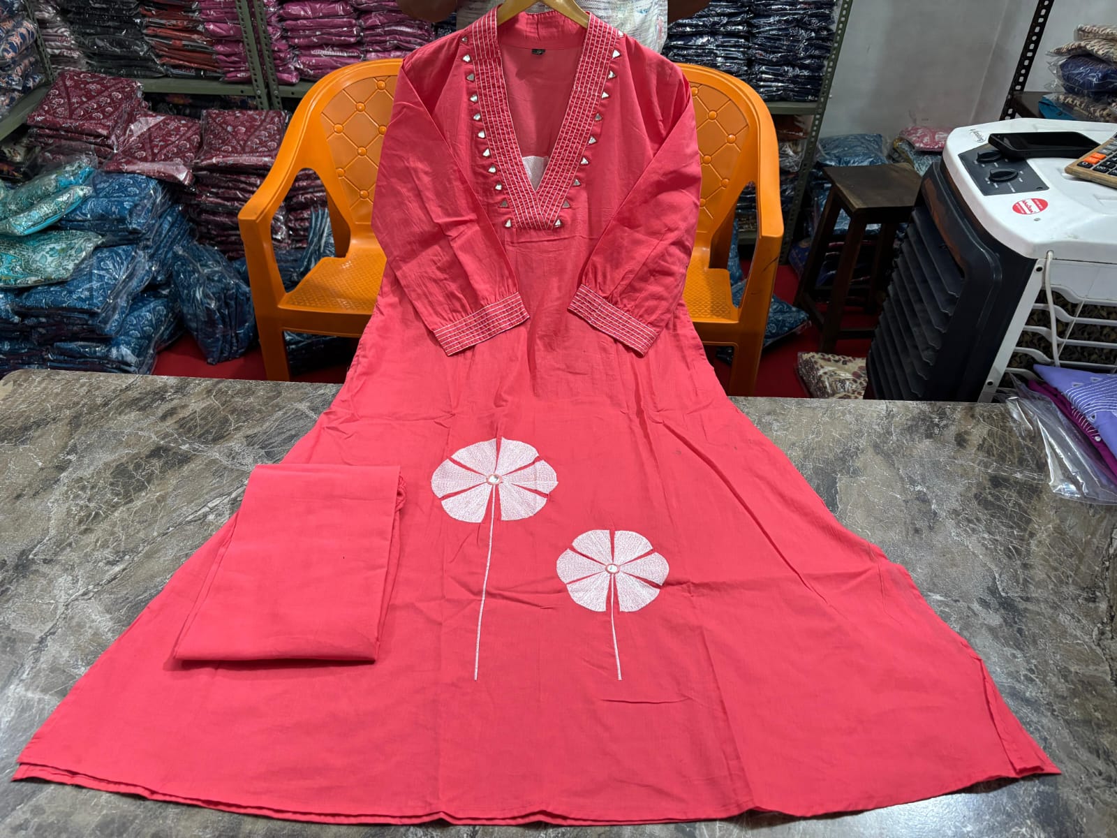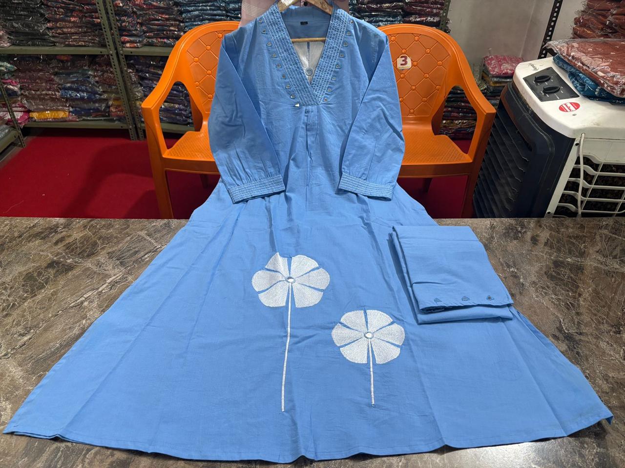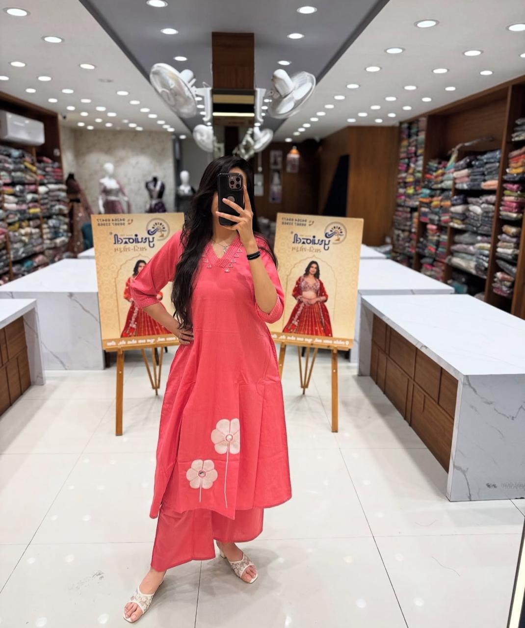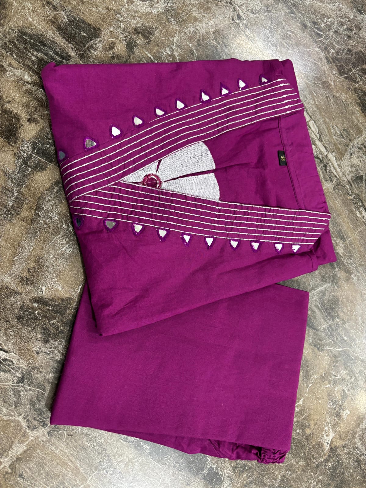 Step into timeless charm with this graceful lavender kurti set, featuring delicate white floral appliqué for a touch of freshness. The soft fabric drapes beautifully, while the V-neck with intricate detailing adds a hint of sophistication. Perfect for casual outings or light festive gatherings, this ensemble blends comfort with chic minimalism.