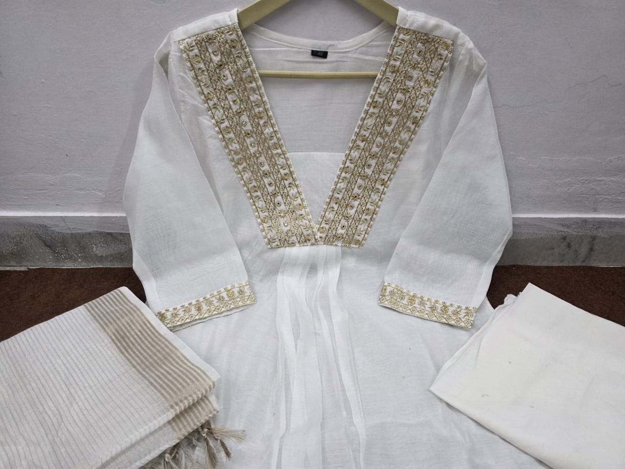 | Fabric | Chanderi kurti (cotton lining) + Cotton pant + Chanderi dupatta |