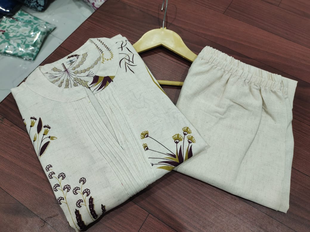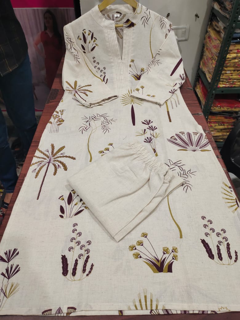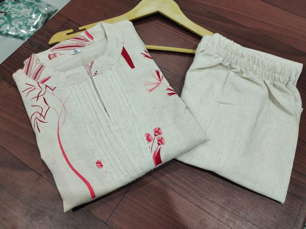 Flex Cotton = The Perfect Kurta Set! Crafted from breathable flax cotton for effortless elegance, this kurta with palazzo set is designed to keep you stylish and comfortable. It comes with one side pocket for practicality and is available in six stunning shades, making it your ideal summer essential.