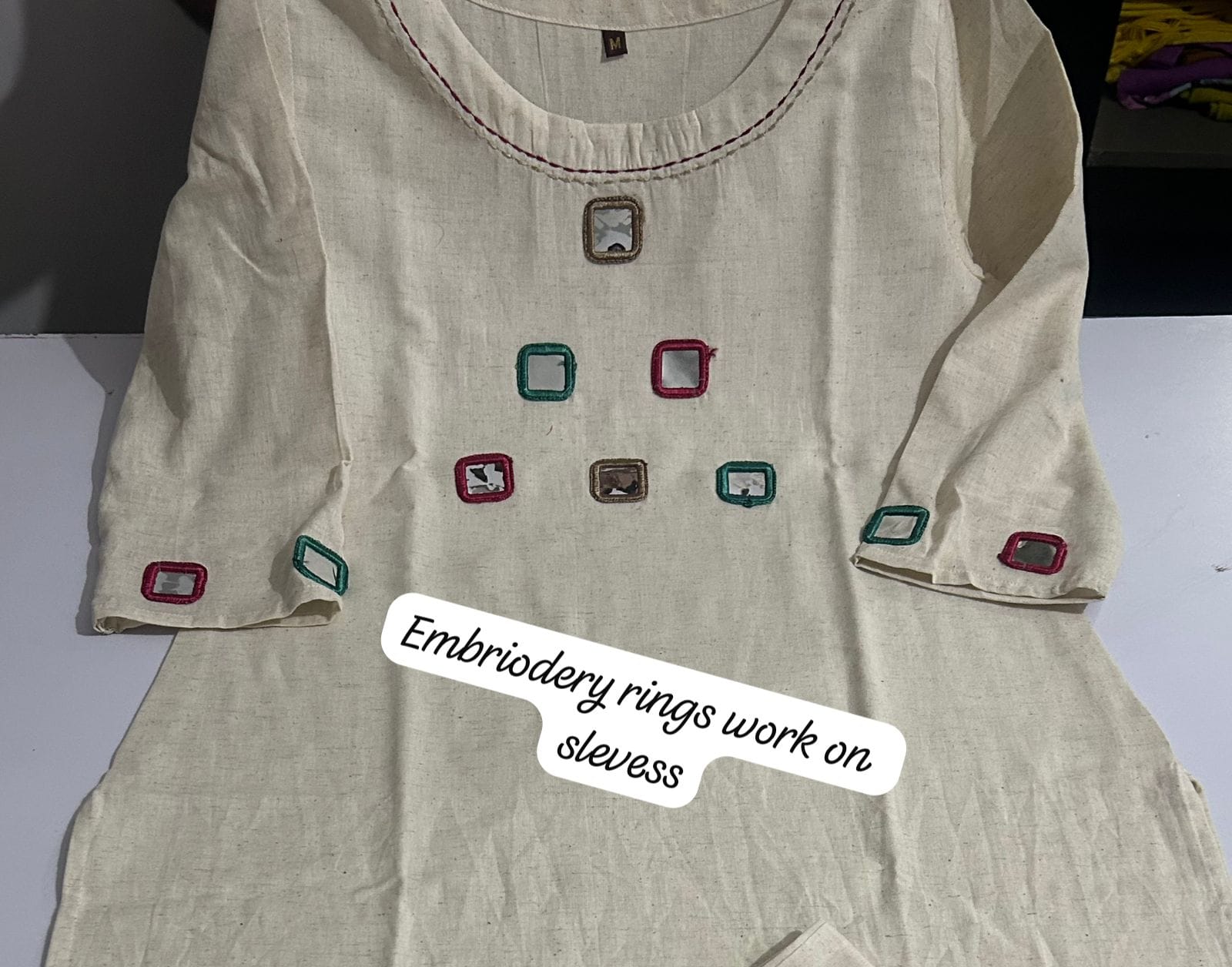 ✔ Embroidery on neckline, sleeves, and hem of kurti
