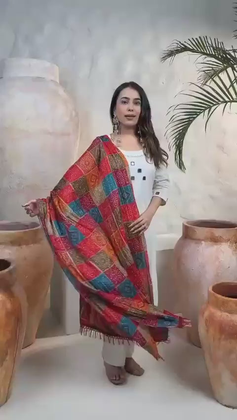 Fabric: Khadi Flex Cotton (Kurti & Pants) + Bandhani Crush Cotton Dupatta