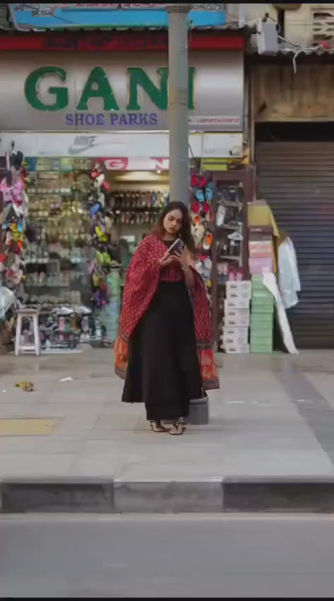 Colour: Black Kurti with Maroon Dupatta – bold and timeless