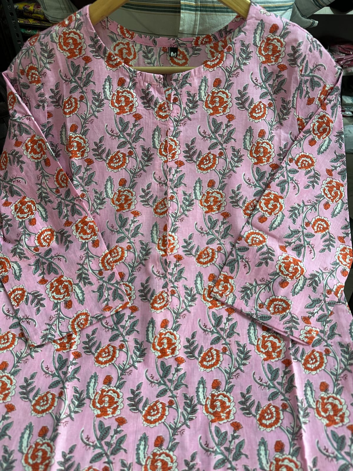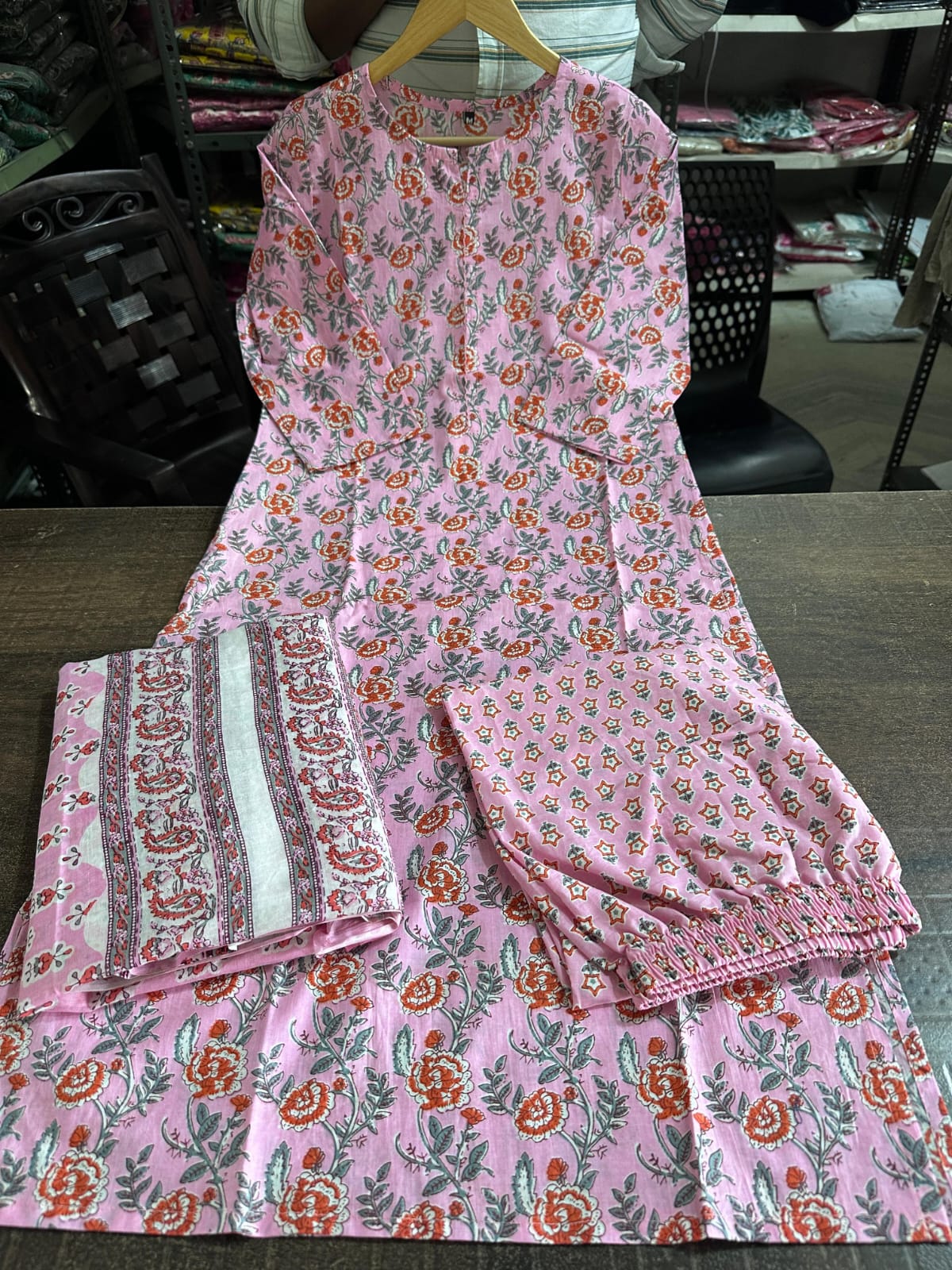 Pink Straight-Cut Cotton Kurti Set with Dupatta.