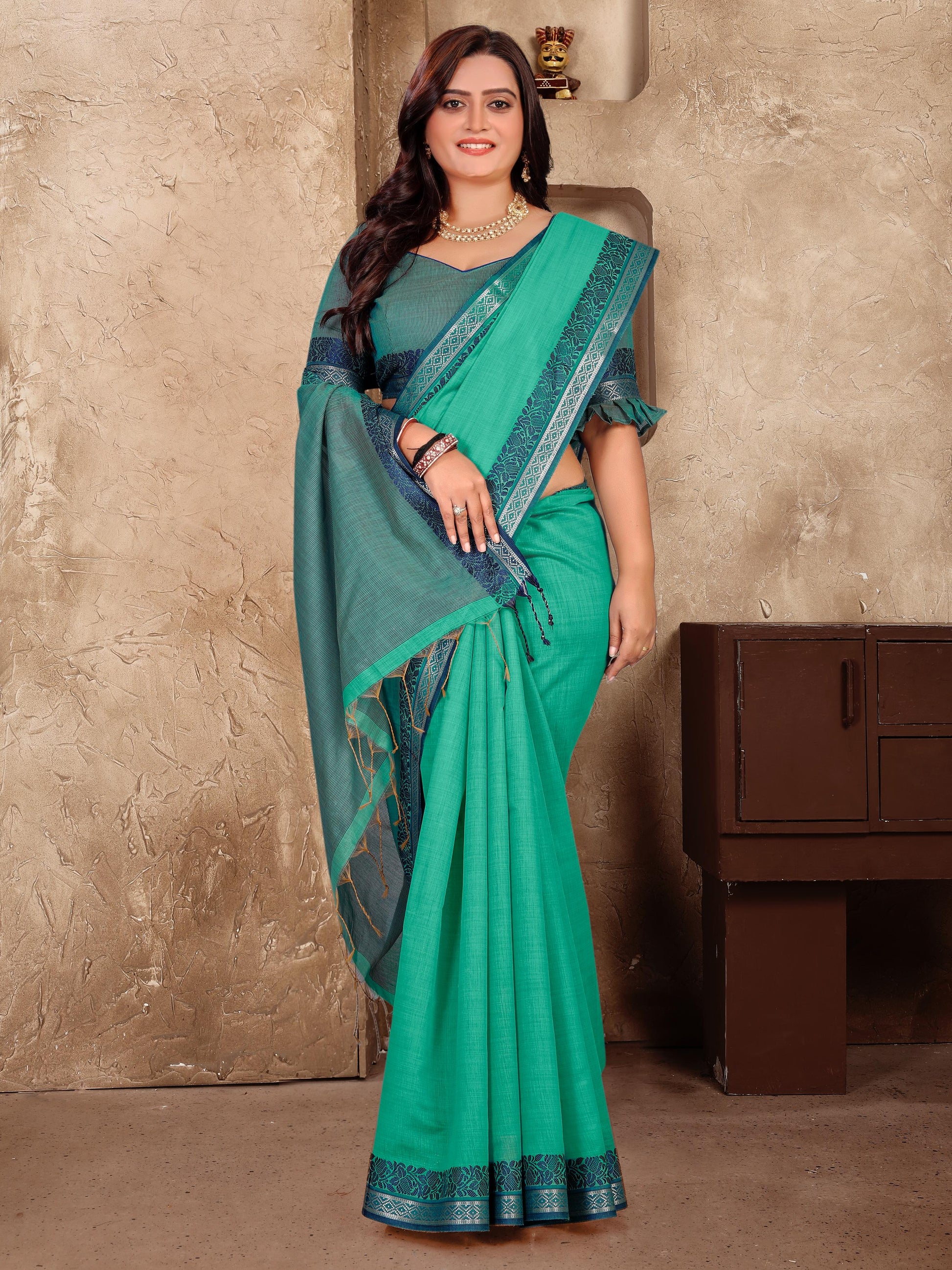 Emerald Green Kurta – Matching Emerald saree with Navy Border
