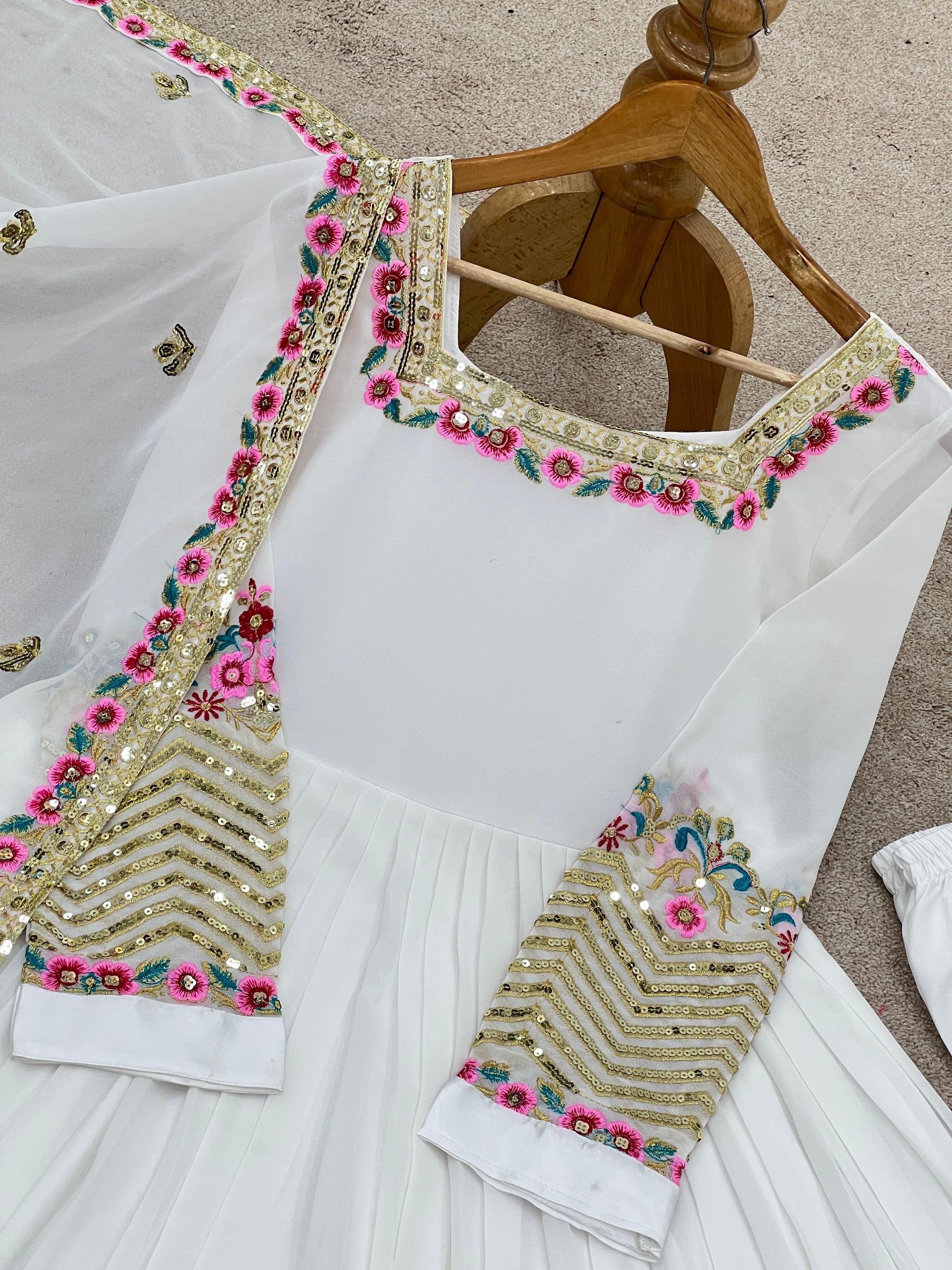 Fabric: Heavy Georgette (Gown & Dupatta), Heavy Micro Cotton (Inner & Bottom)