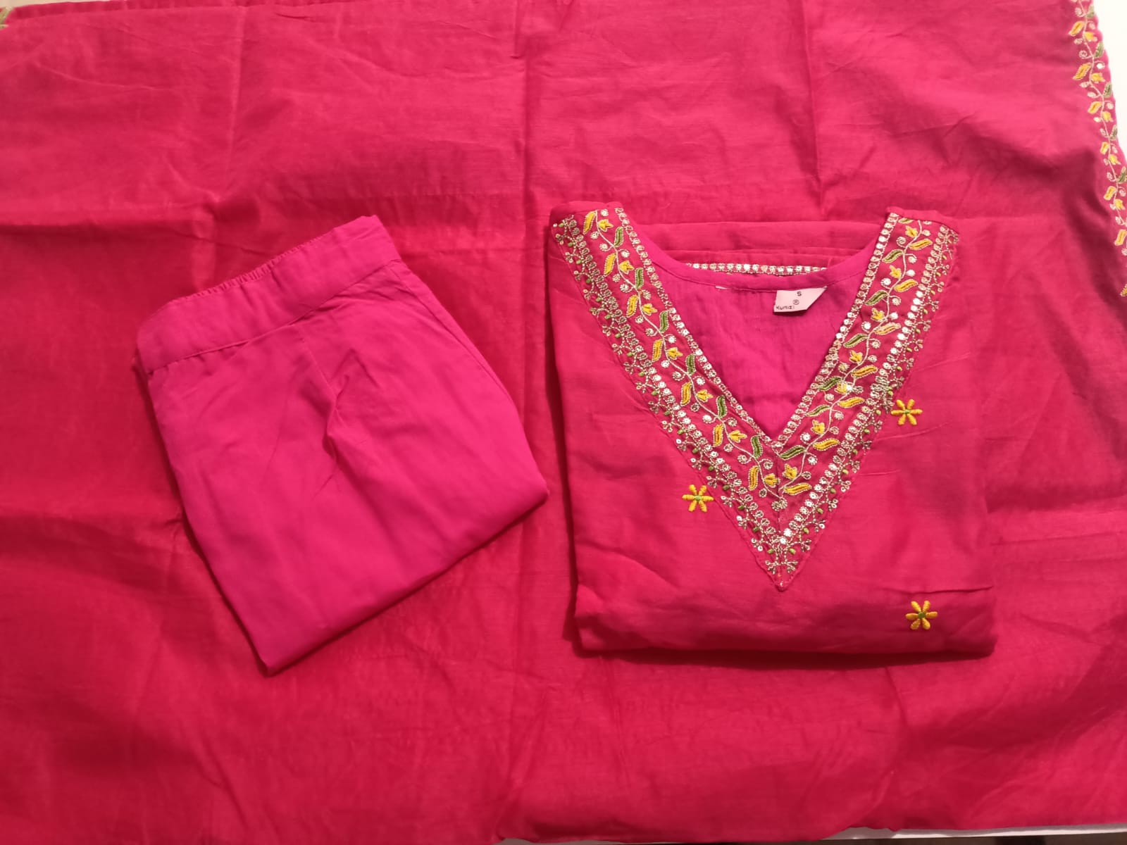 Step into radiant charm with this Elegant Chanderi Kurta Set, designed to bring together festive elegance and everyday comfort. Crafted in a rich hot pink shade, it exudes vibrancy while maintaining a graceful, timeless appeal—perfect for celebrations, gatherings, or special occasions.