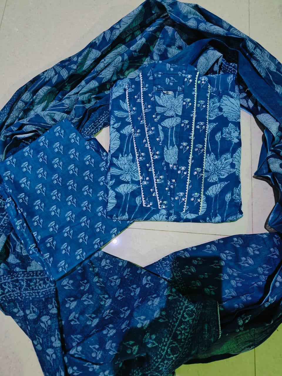 Elegant Indigo Charm - Handcrafted Block Print Kurti Set