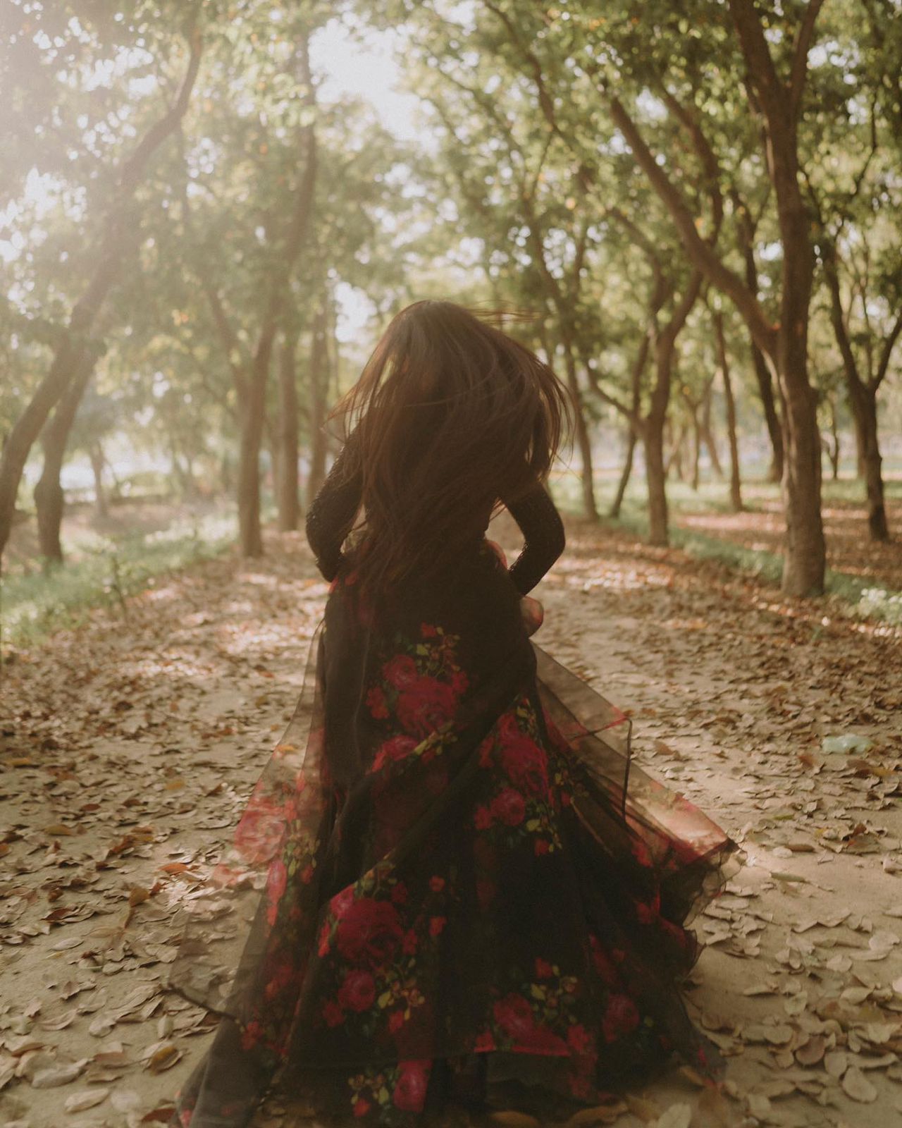 | Work | Sequins on blouse, Digital floral prints on lehenga & dupatta |