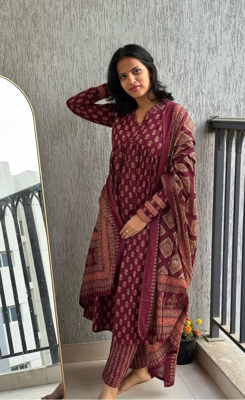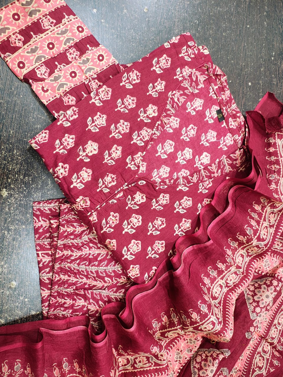 FESTIVAL SPECIAL COTTAN KURTI WITH PANTS AND DUPATTA.