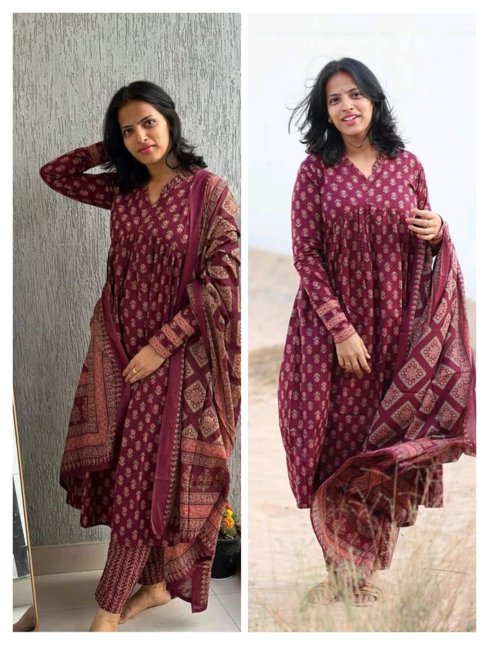 Celebrate the festive season in this beautifully crafted cotton Kurti set, featuring delicate handwork. Designed for comfort and elegance, it’s perfect for casual gatherings, family events, or festive celebrations.