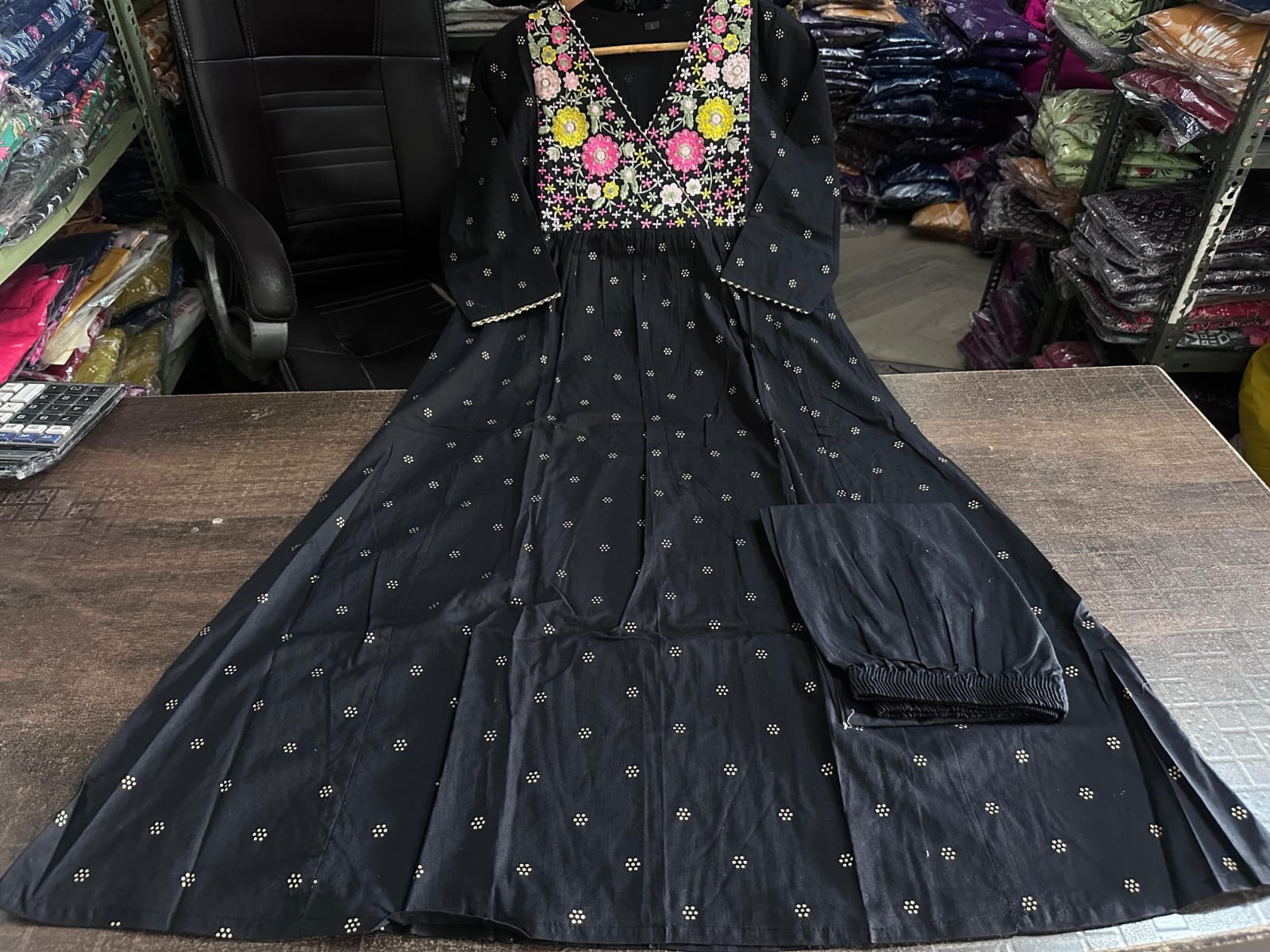| Design Details | Intricate neckline embroidery, A-line silhouette |
