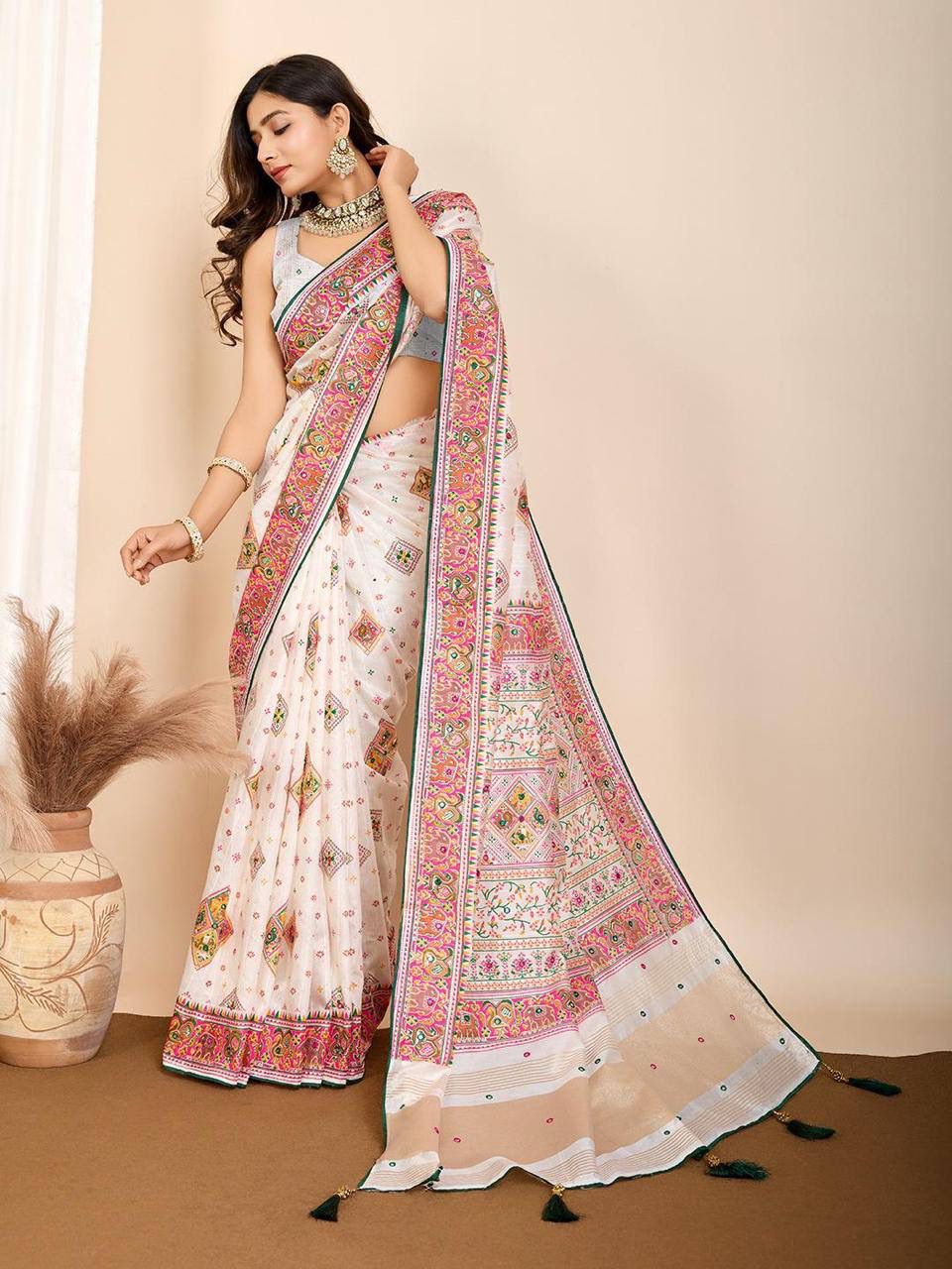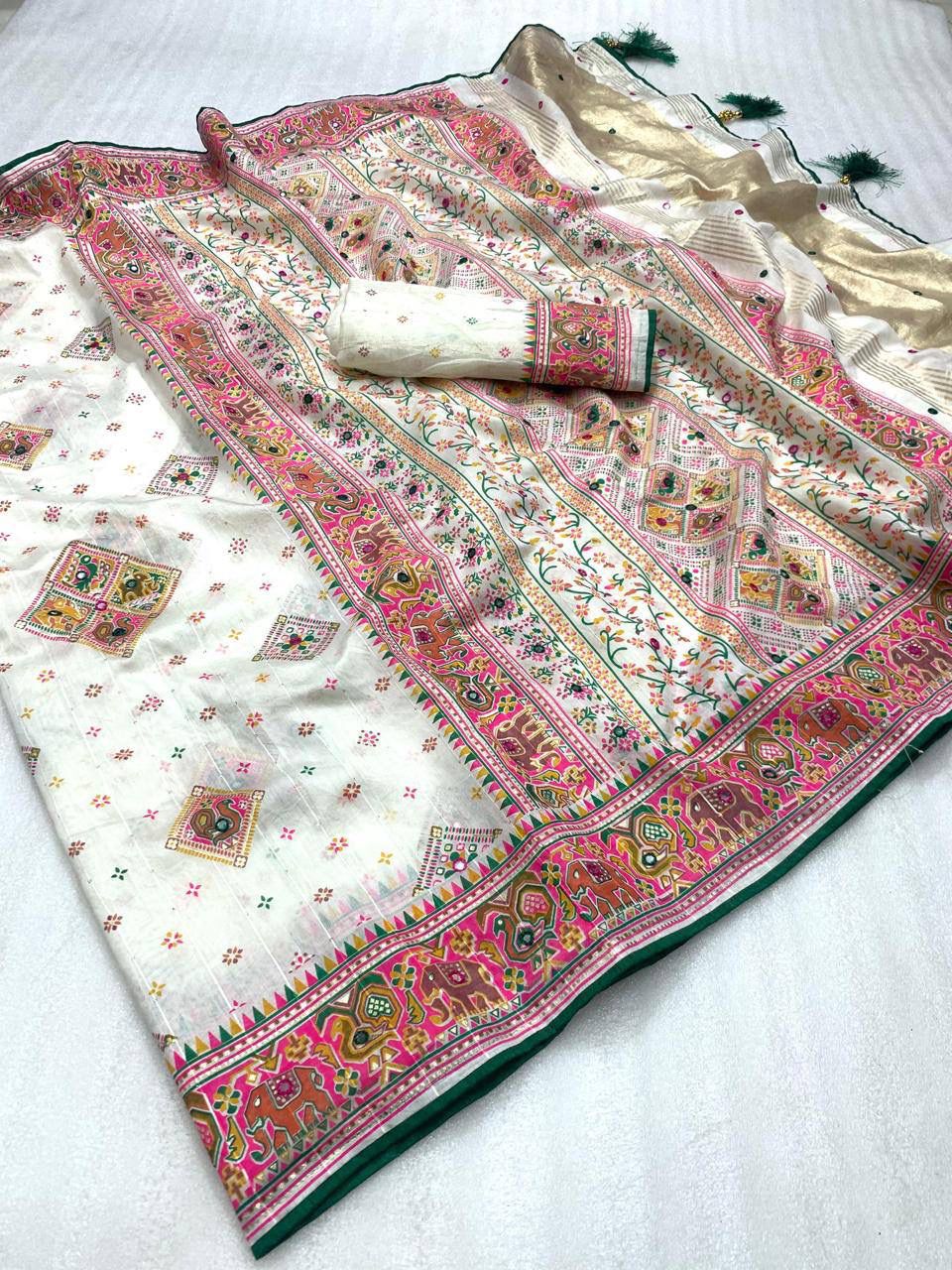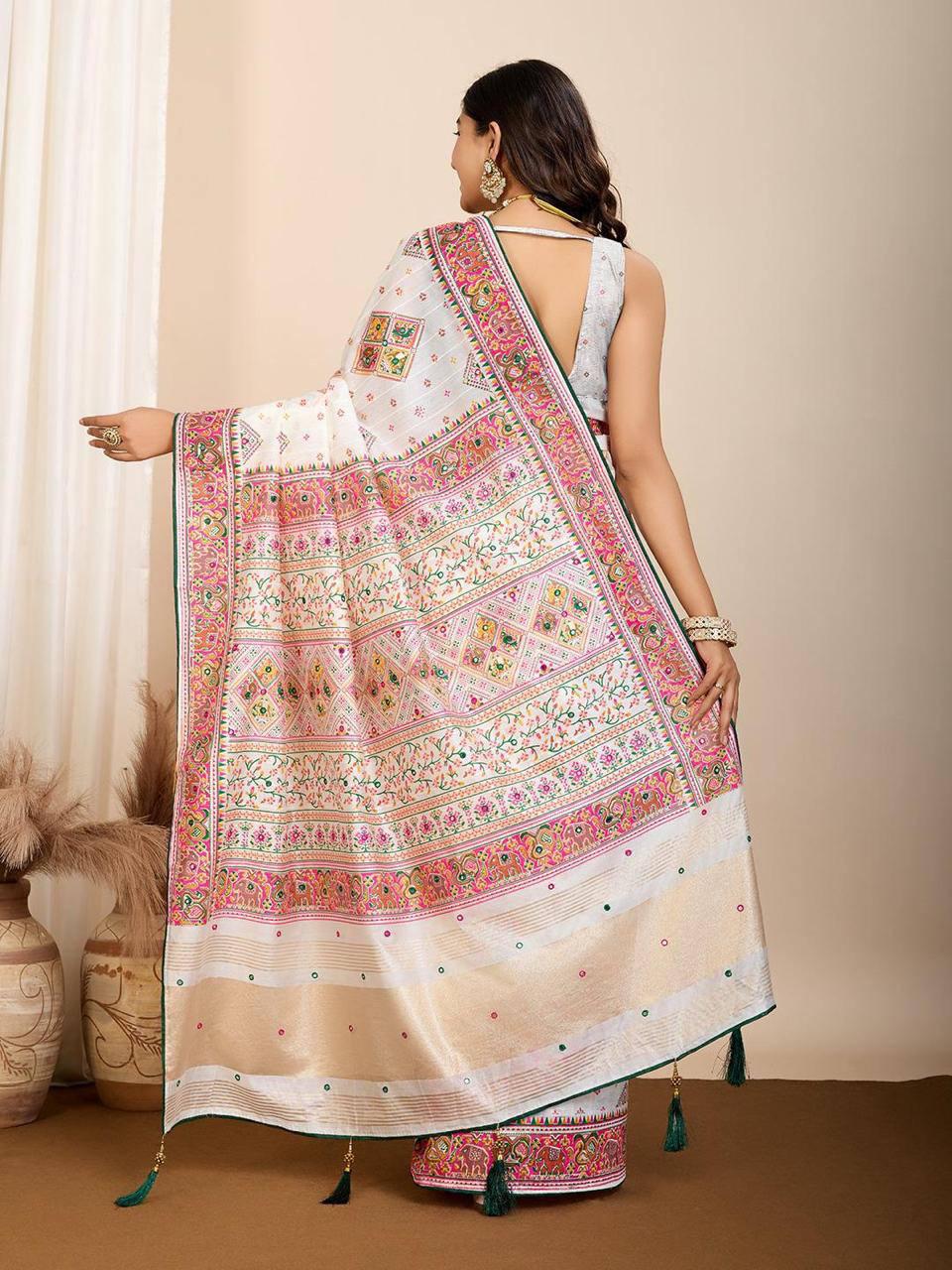 Pearl White Patola Silk Saree with Multicolour Motifs