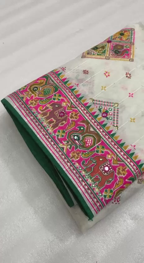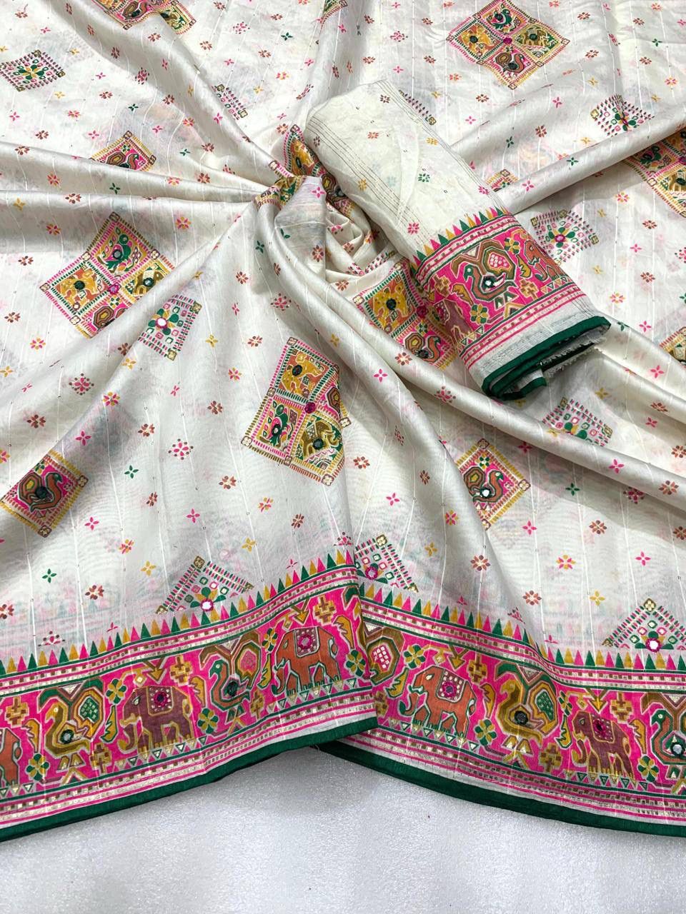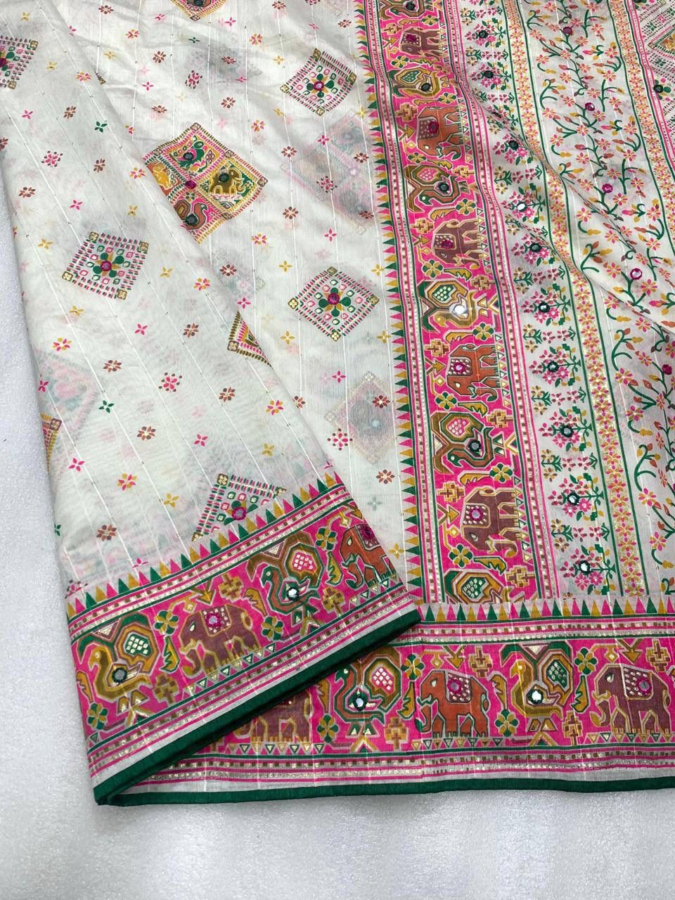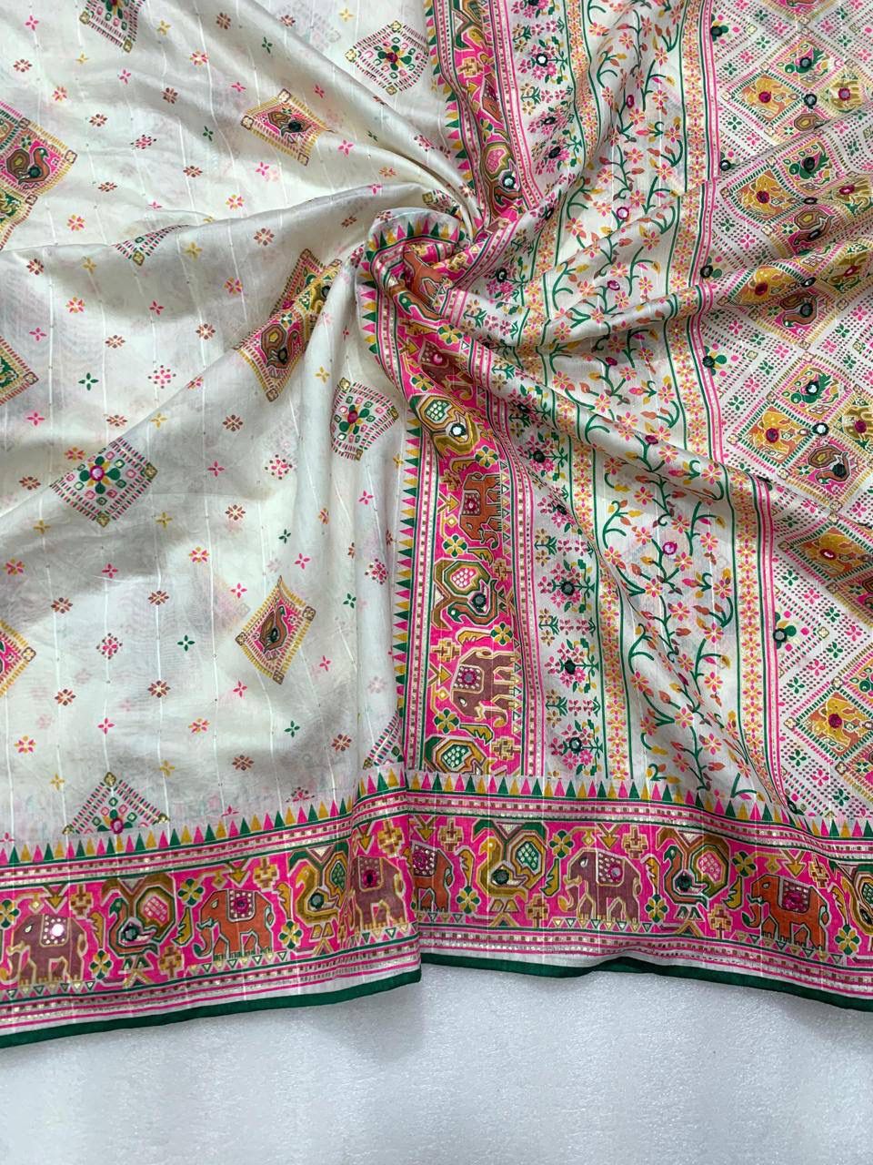 Pearl White Patola Silk Saree with Multicolour Motifs
