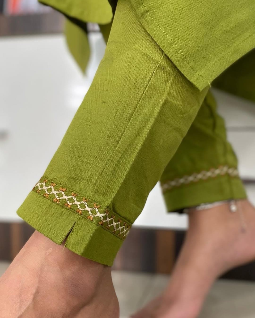 Green Straight-Cut Cotton Kurti & Pant Set.