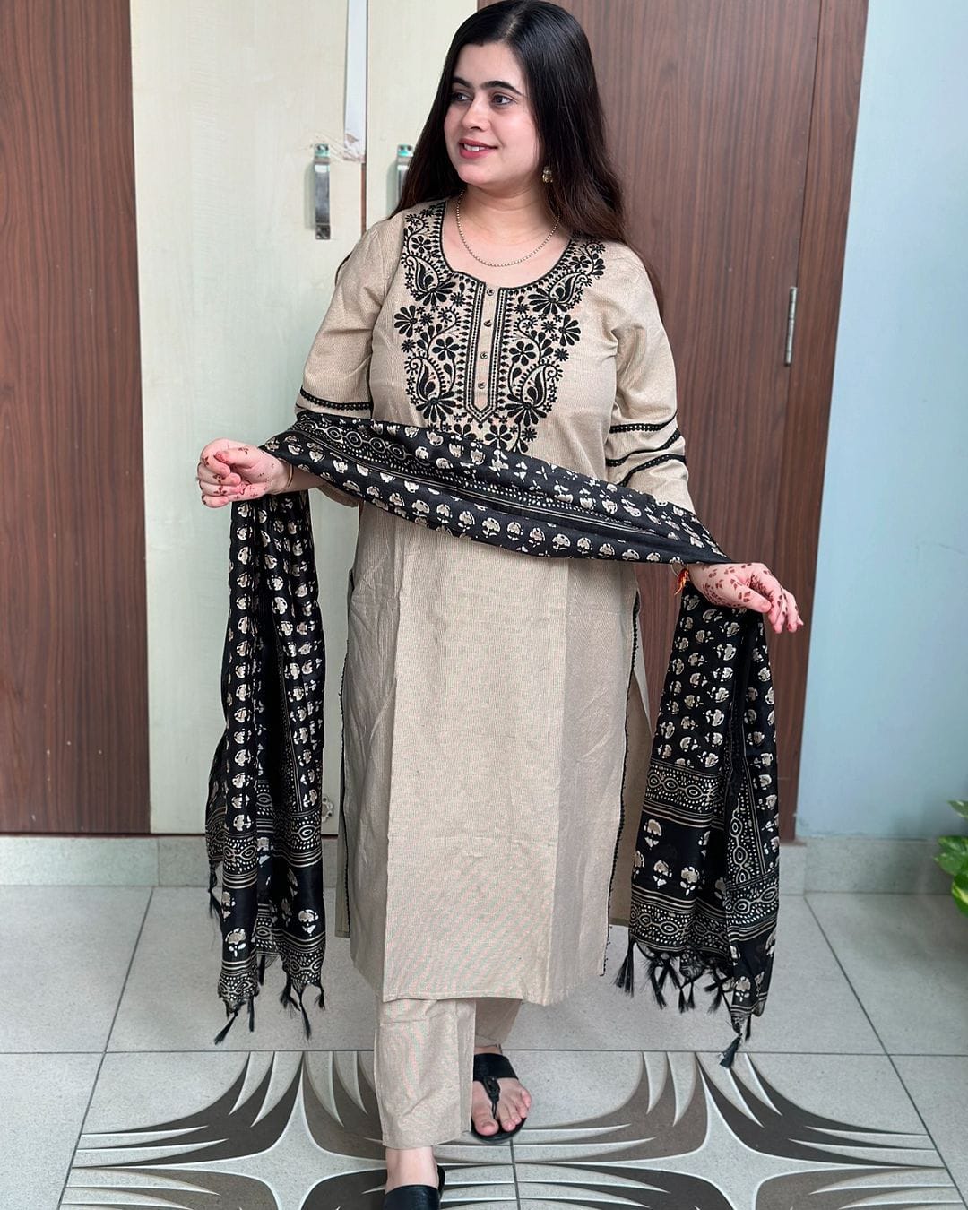 | Silhouette | Straight-cut kurti with matching bottoms and contrasting dupatta |