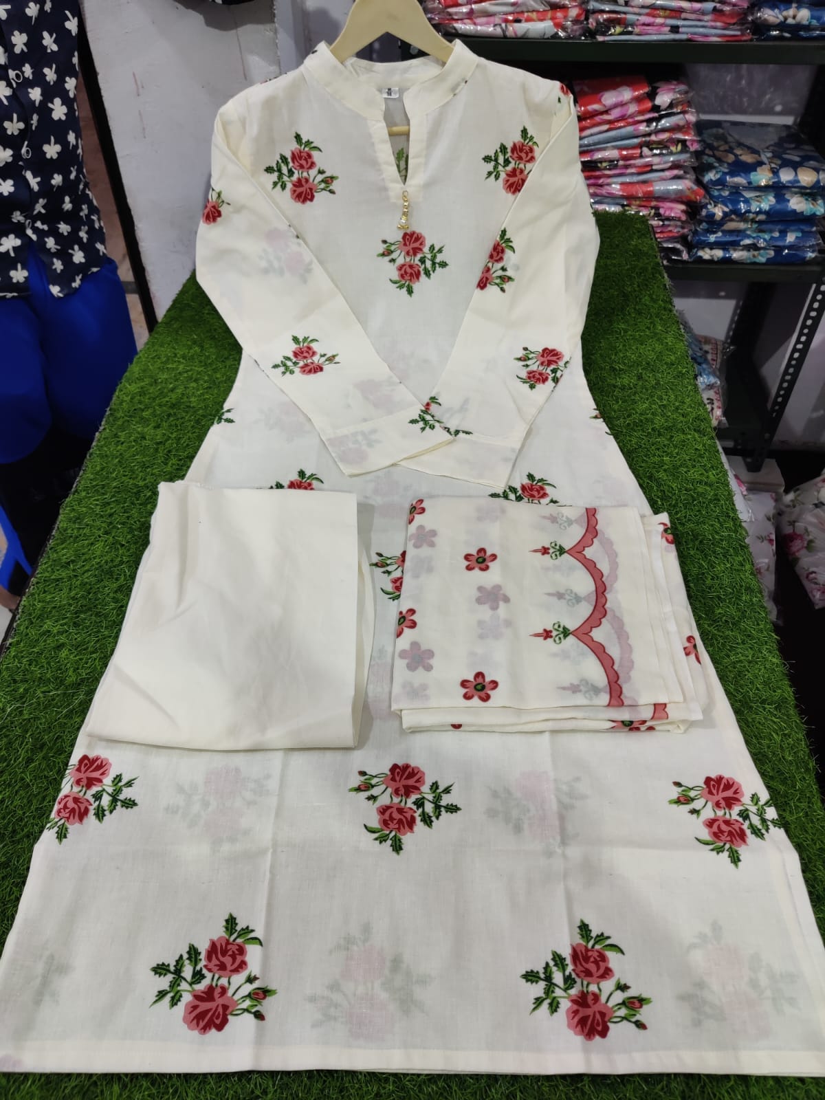 Soft Cream Printed Kurti Set with Matching Dupatta.