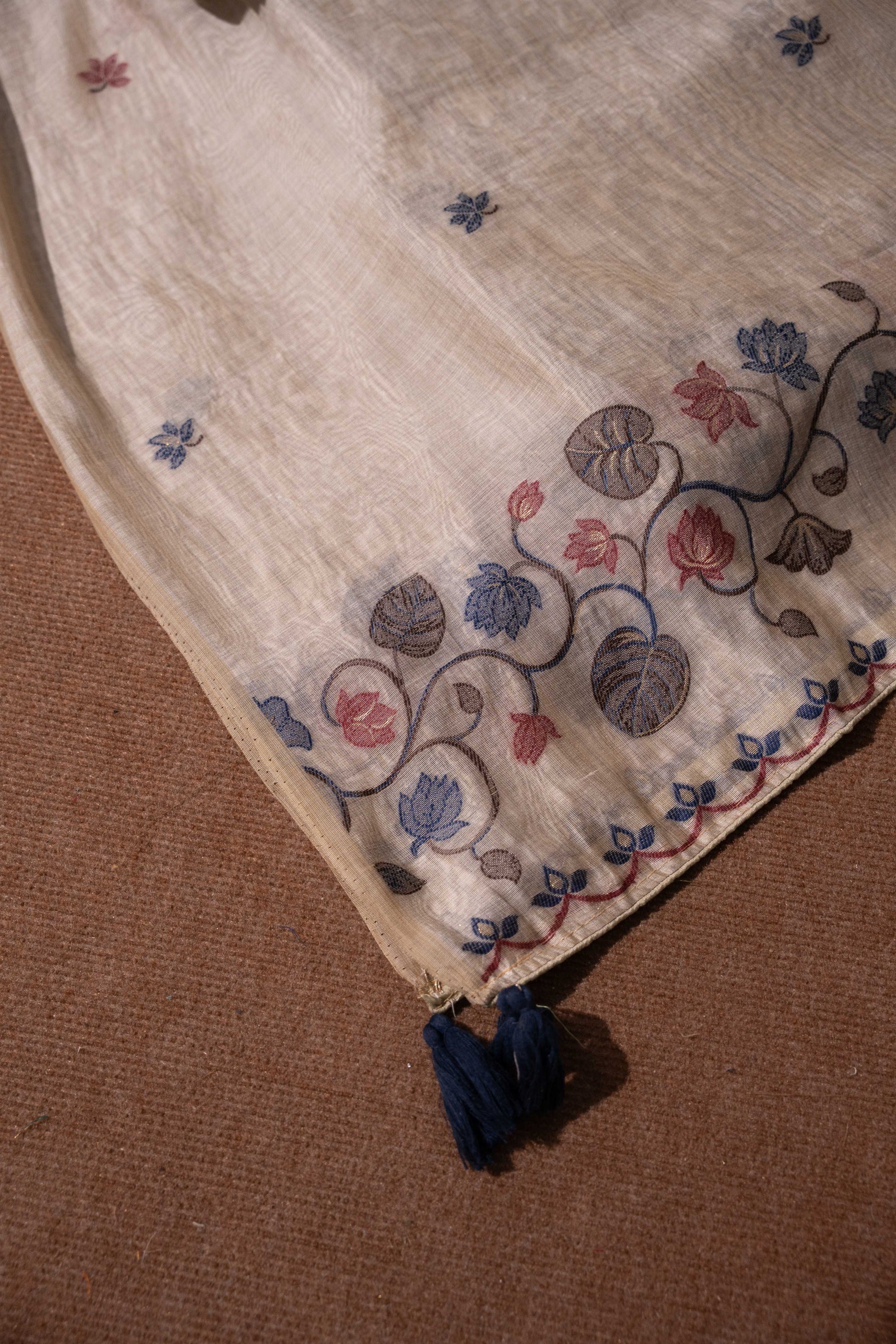 Exquisite Jamdani 3 Piece Suit in elegant beige and blue tones, crafted from soft muslin cotton. The unstitched set comes with a finely woven top, a comfortable shantoon bottom, and a graceful muslin dupatta, giving you the freedom to tailor it to your style. The intricate Jamdani weave adds timeless charm, making this suit perfect for festive occasions, cultural events, or casual gatherings. A blend of comfort and sophistication, this versatile ensemble is a must-have for every collection.