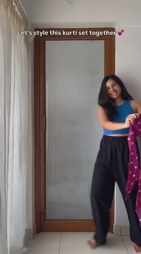 Accents: White Bandhani-inspired prints across the kurti and pants for a refreshing ethnic touch