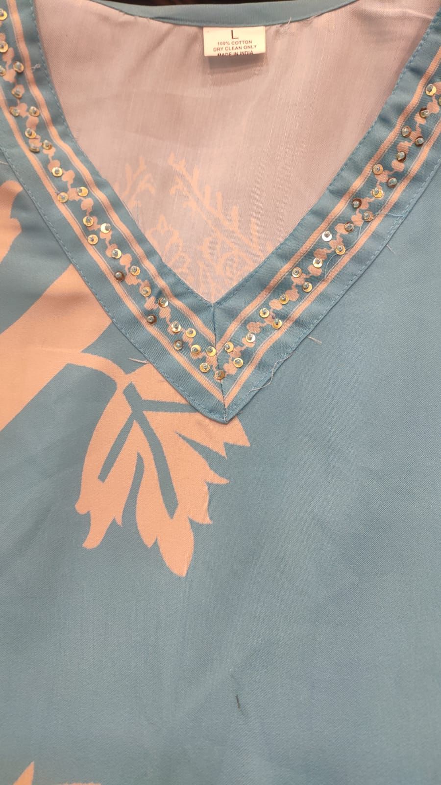 The top features a graceful 47-inch length with delicate handwork on the neckline, paired with a 39-inch pant for a sleek and contemporary look. Whether for casual outings, festive gatherings, or evening wear, this cord set ensures all-day comfort with a touch of sophistication.