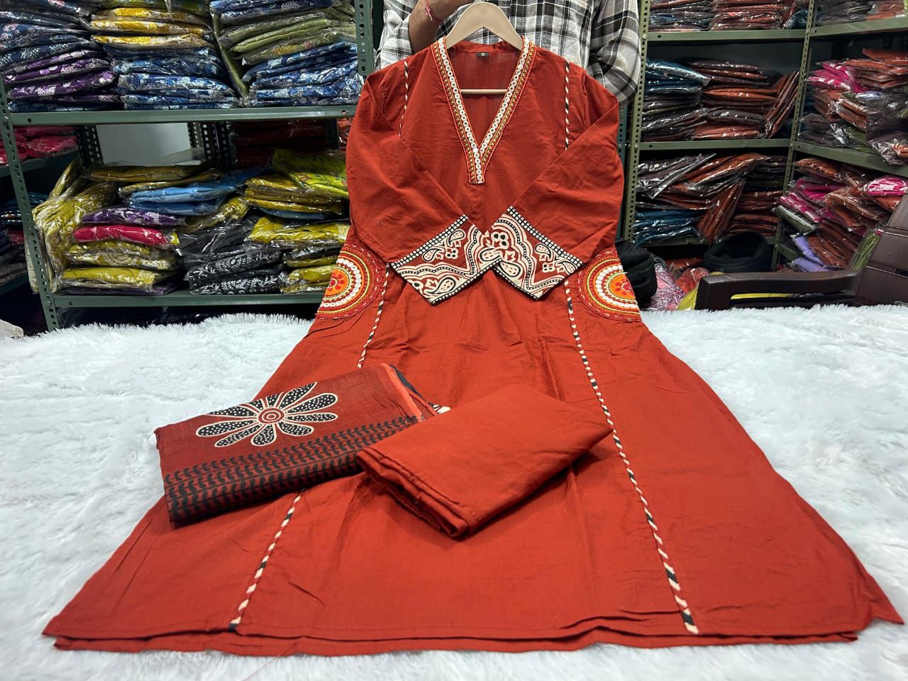 Crafted from Pure Cotton by Taj Group, this suit set ensures softness, breathability, and durability — ideal for festive occasions, family gatherings, or elegant daily wear. With embroidery on both sides and a matching cotton dupatta, this outfit is your go-to choice for classy ethnic styling. 🌸