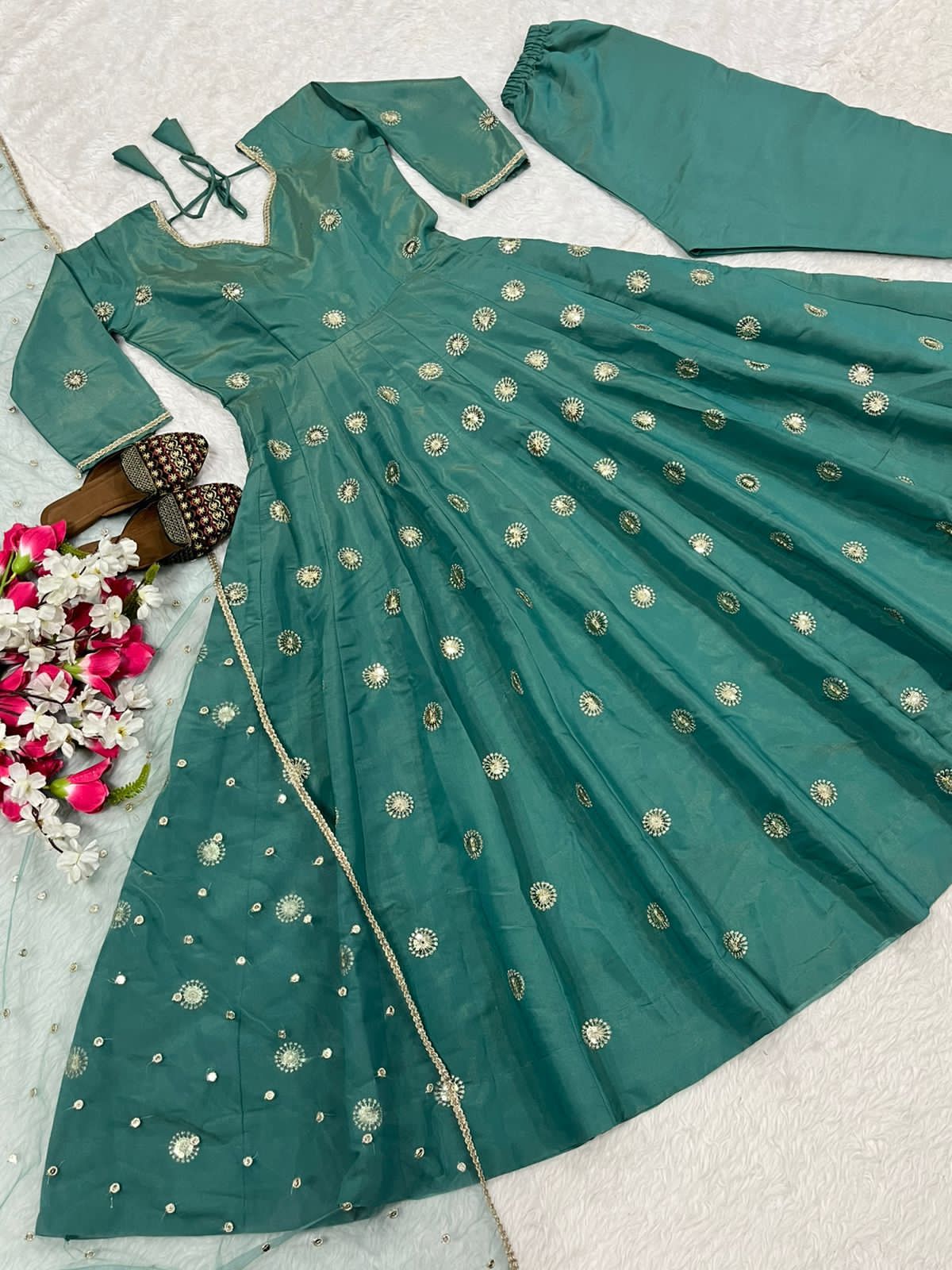 Work: Sequins & Embroidery (5mm on Gown, 9mm on Dupatta)