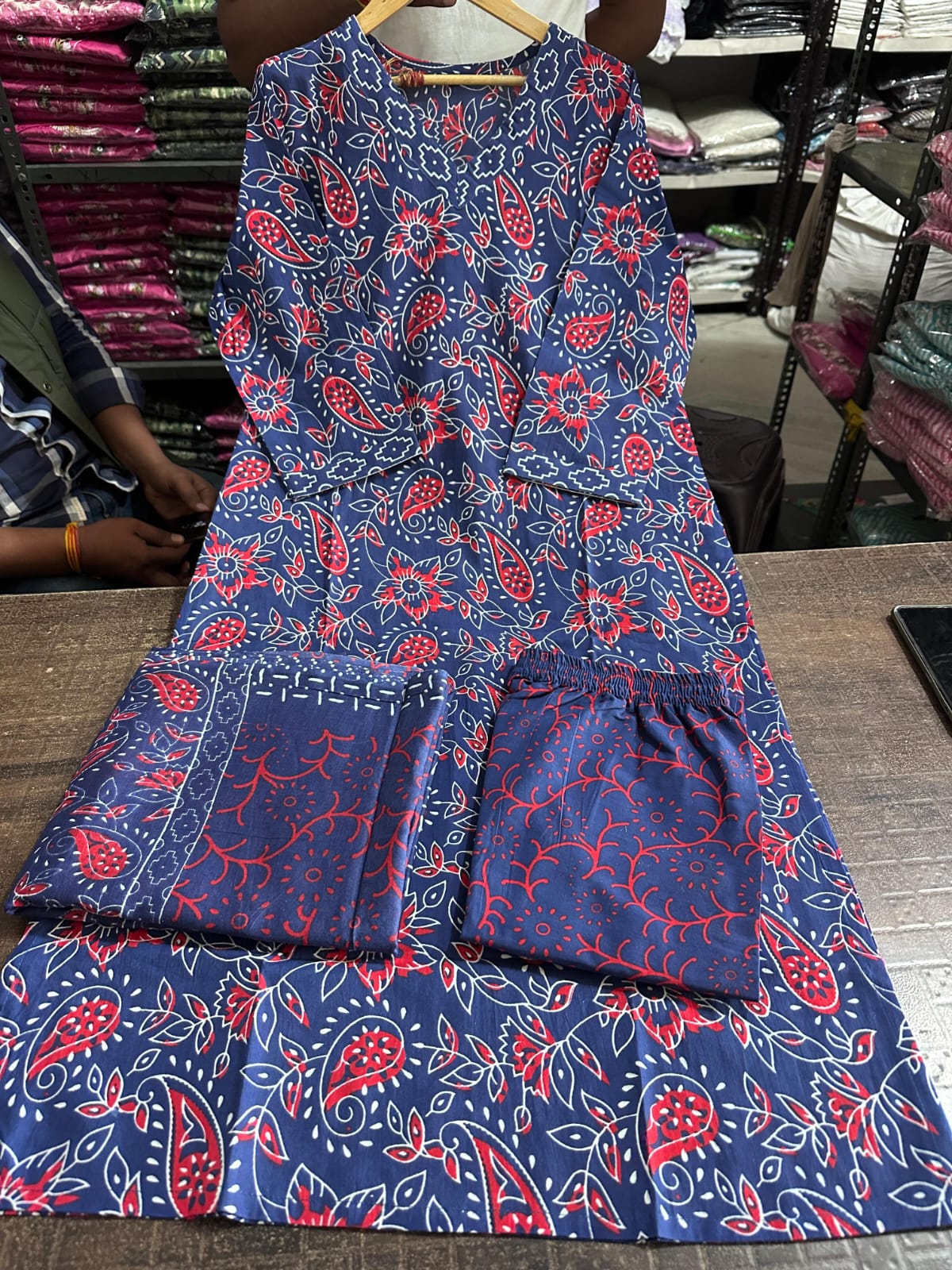 Pure Fine Heavy Cotton Kurti Pant with Dupatta.