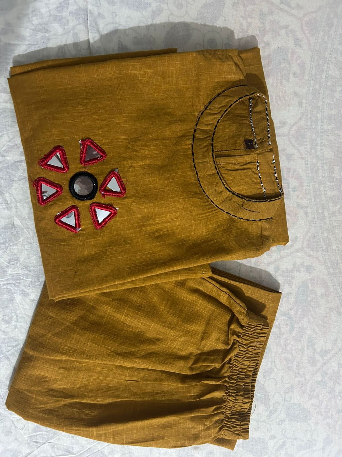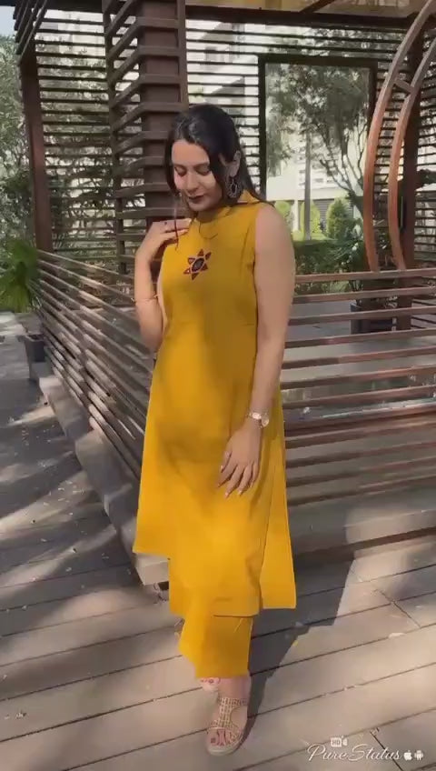 This stunning kurti set is the perfect blend of elegance and comfort, designed to make you shine effortlessly. Crafted in pure cotton smarty fabric, the straight-cut kurti features delicate embroidery on the neckline and both-side pockets, adding a touch of minimalistic charm with refined detail. A backside button ensures a perfect fit, while mega sleeves are attached inside for versatility. Paired with matching cotton plazo pants, this ensemble is ideal for festive gatherings, casual outings, or everyday sophistication.