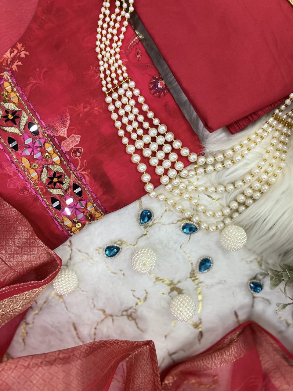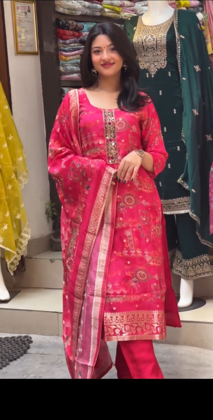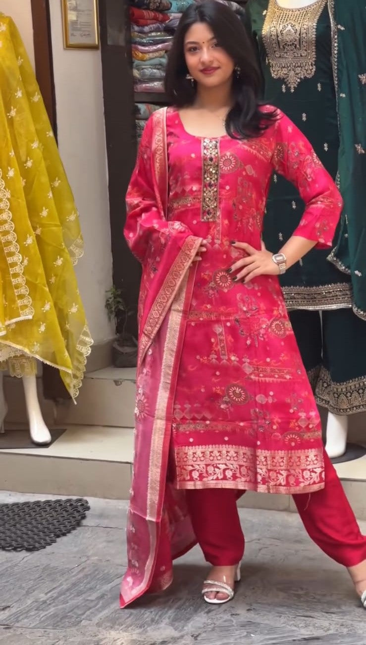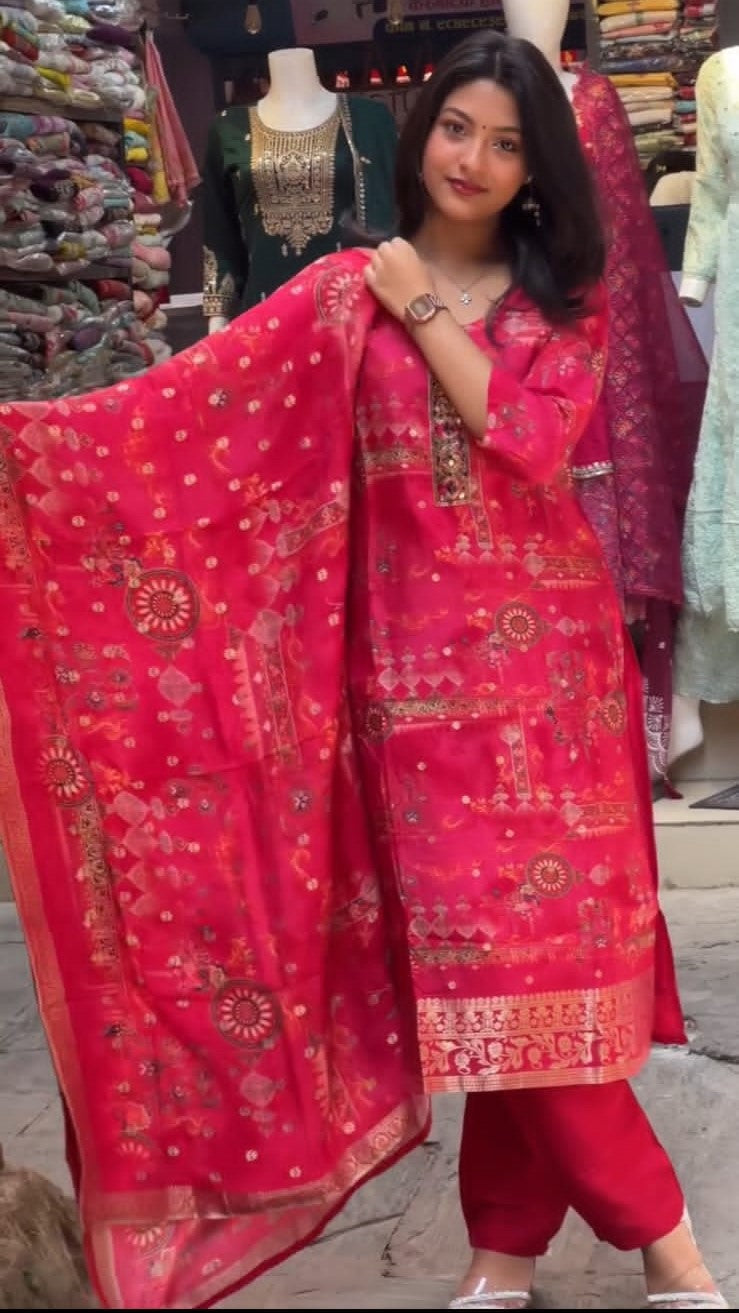 Includes the top, bottom, and dupatta, offering a beautifully coordinated ethnic ensemble ready to wear.