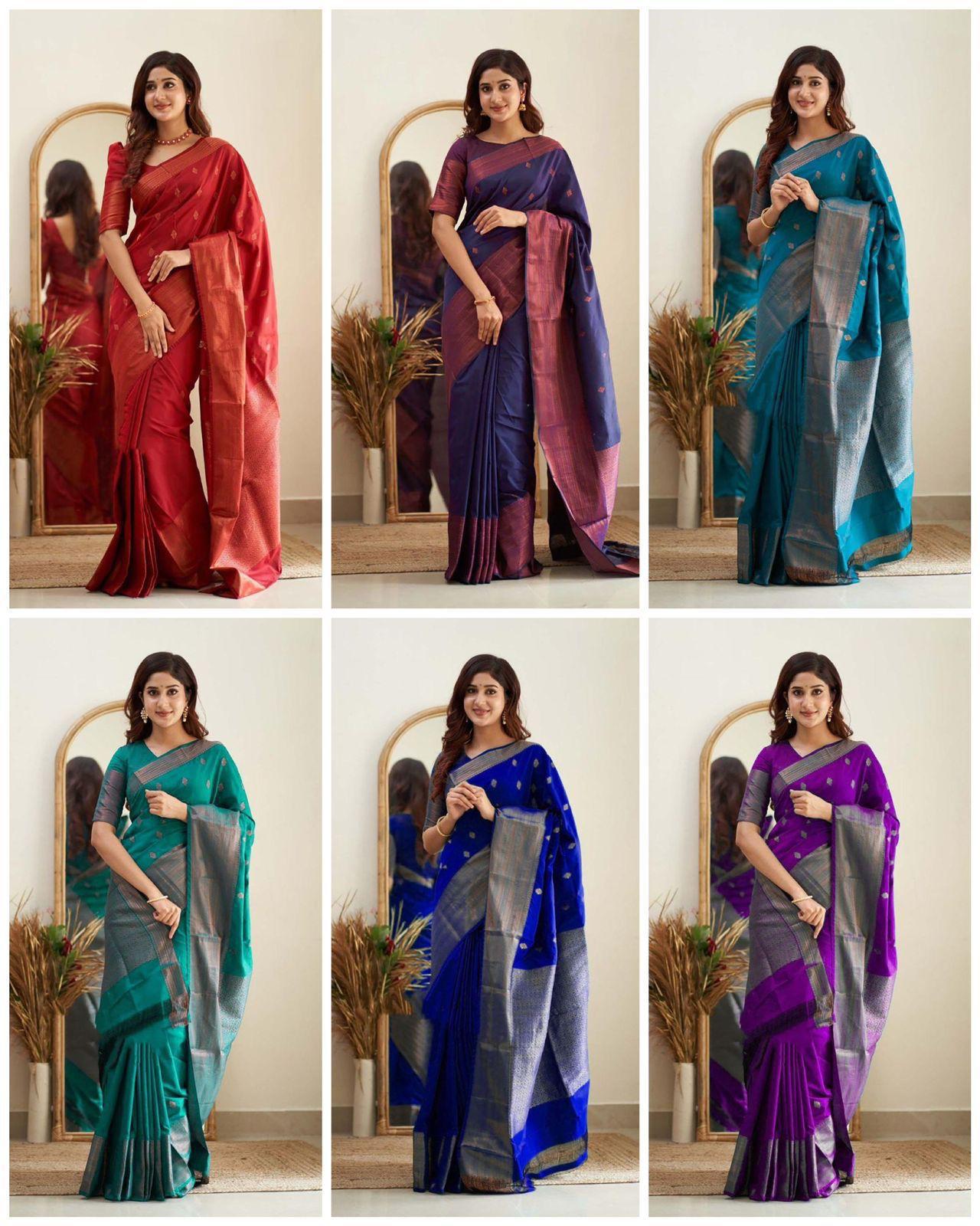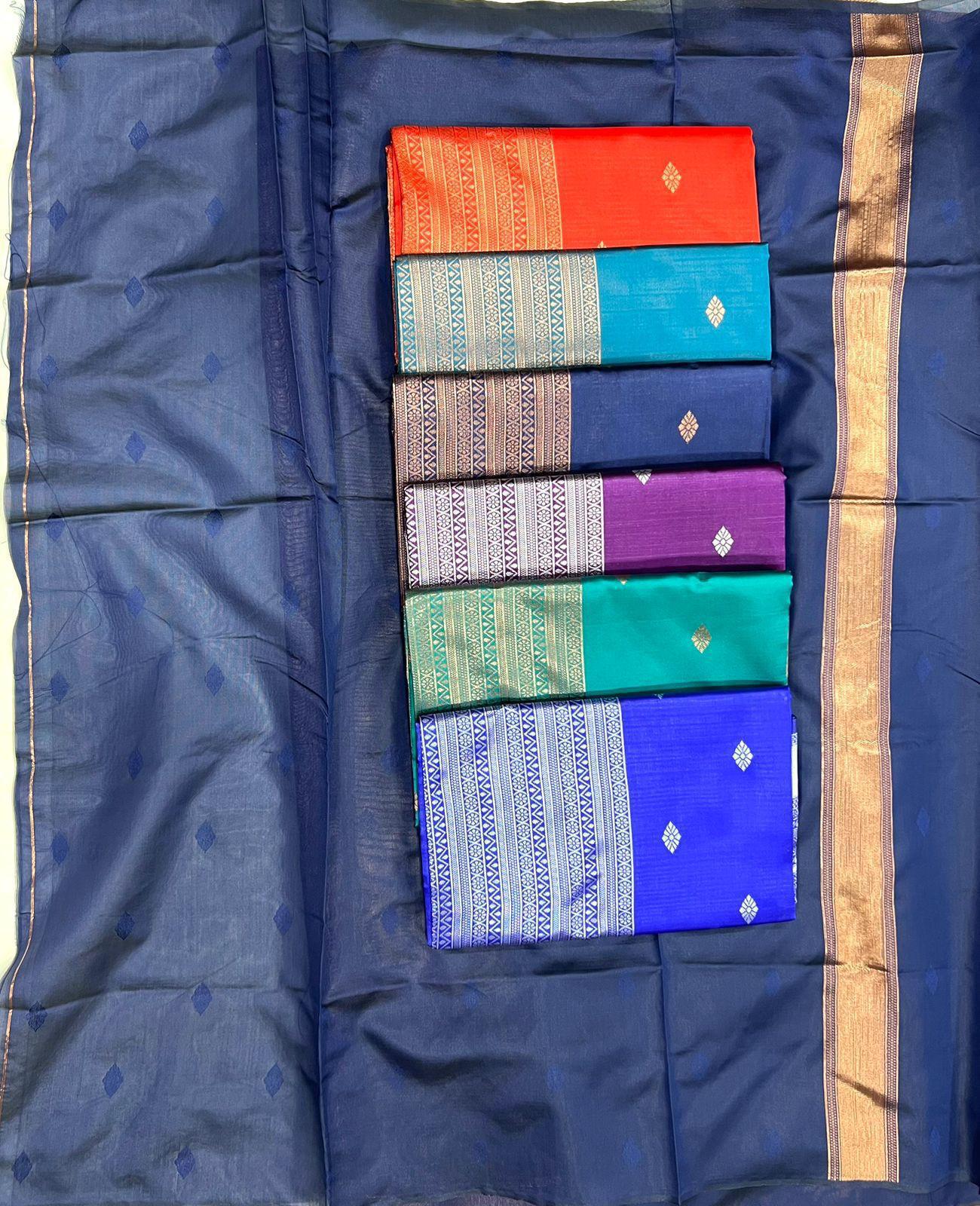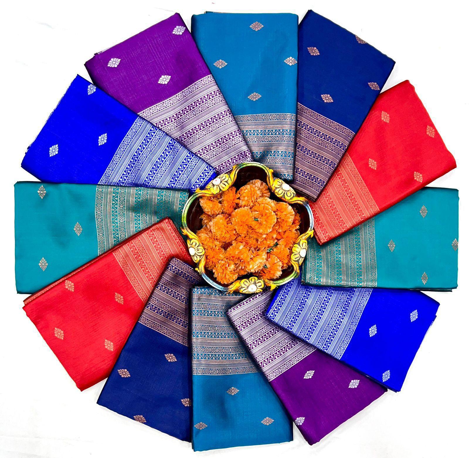 Intricately Woven Jacquard Work: Each saree is adorned head to toe with traditional jacquard motifs—highlighted by a beautifully ornate pallu.
