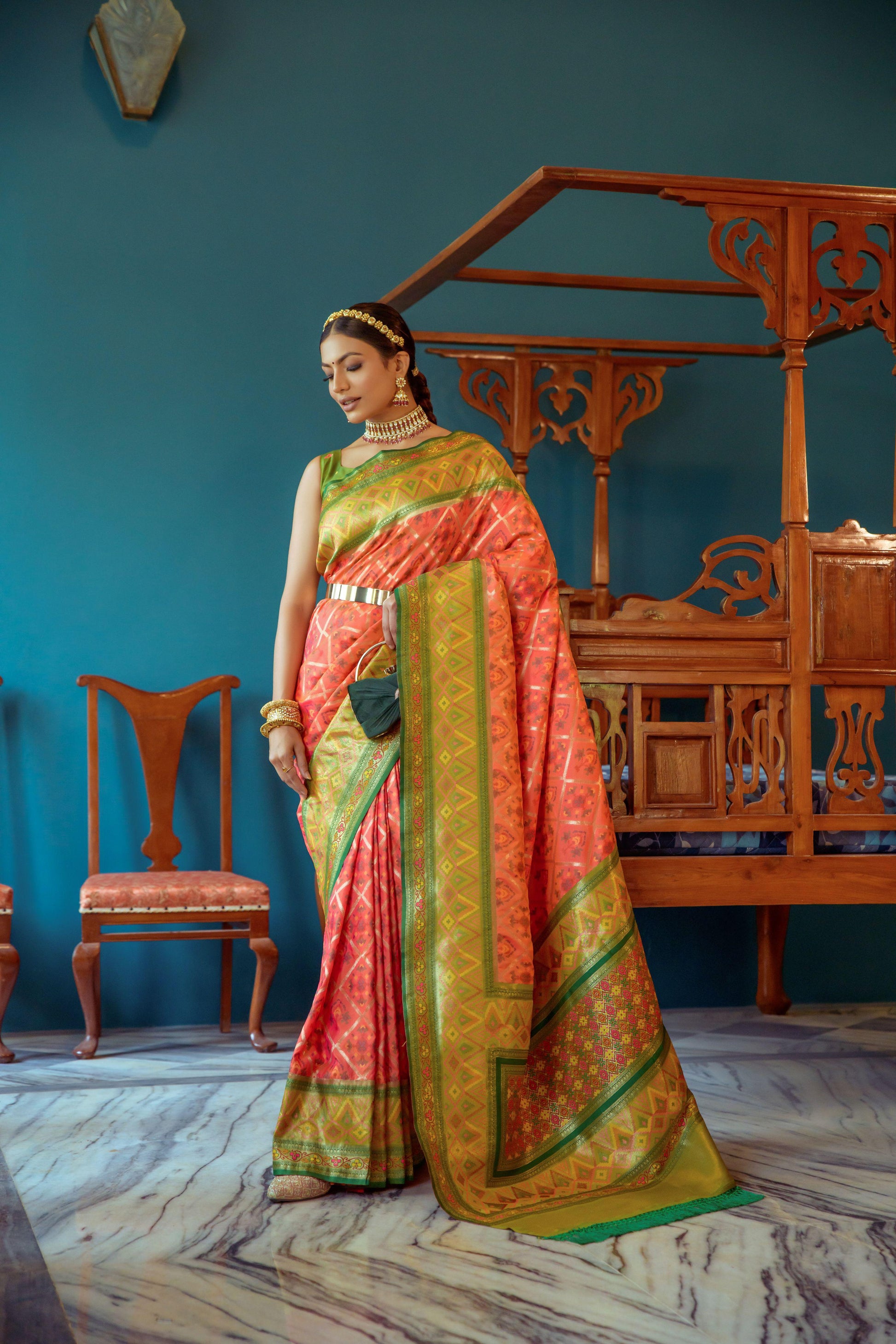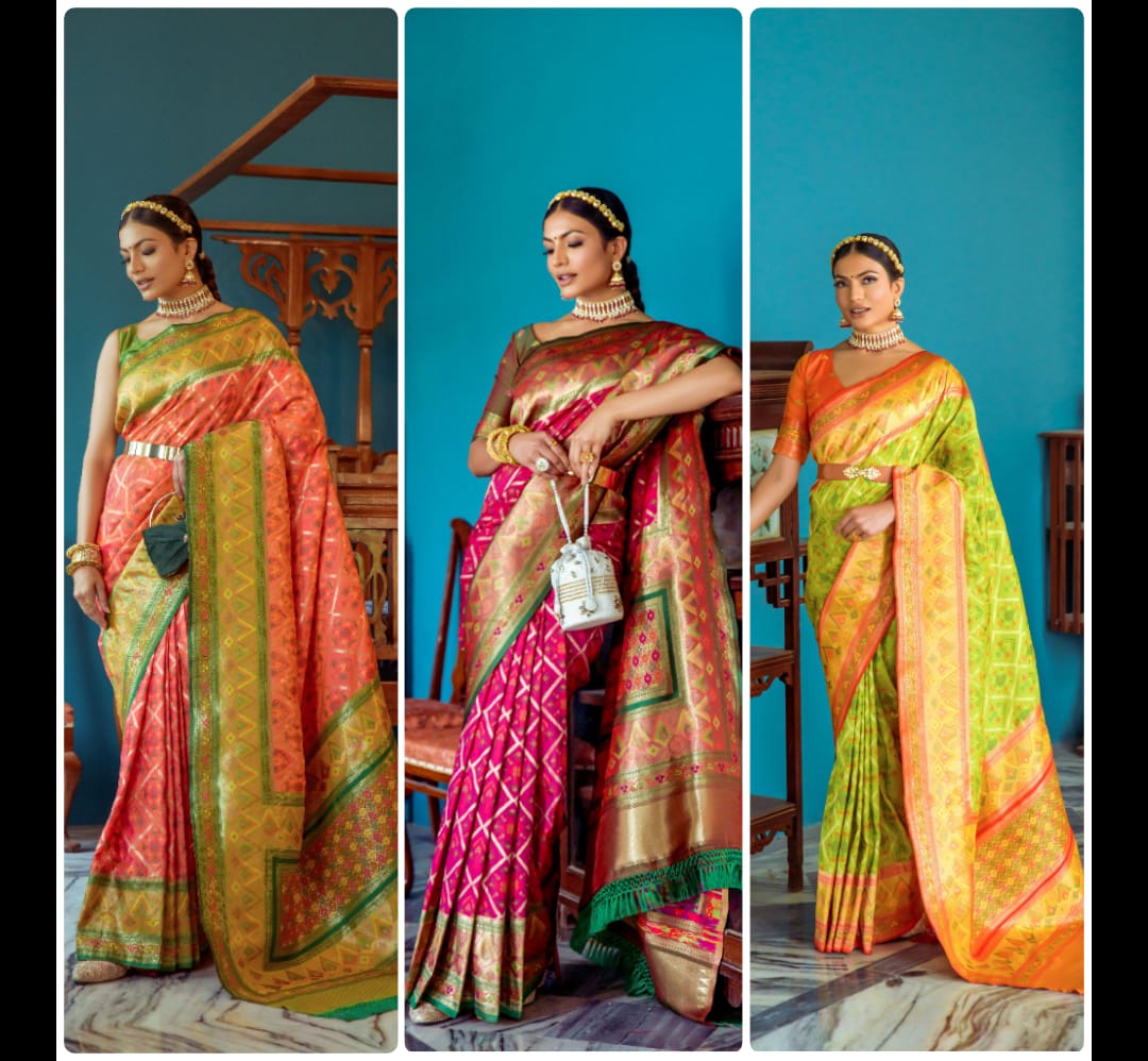 Vibrant Banarasi Silk Saree with Contrast Patola Border & Brocade Blouse.