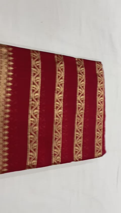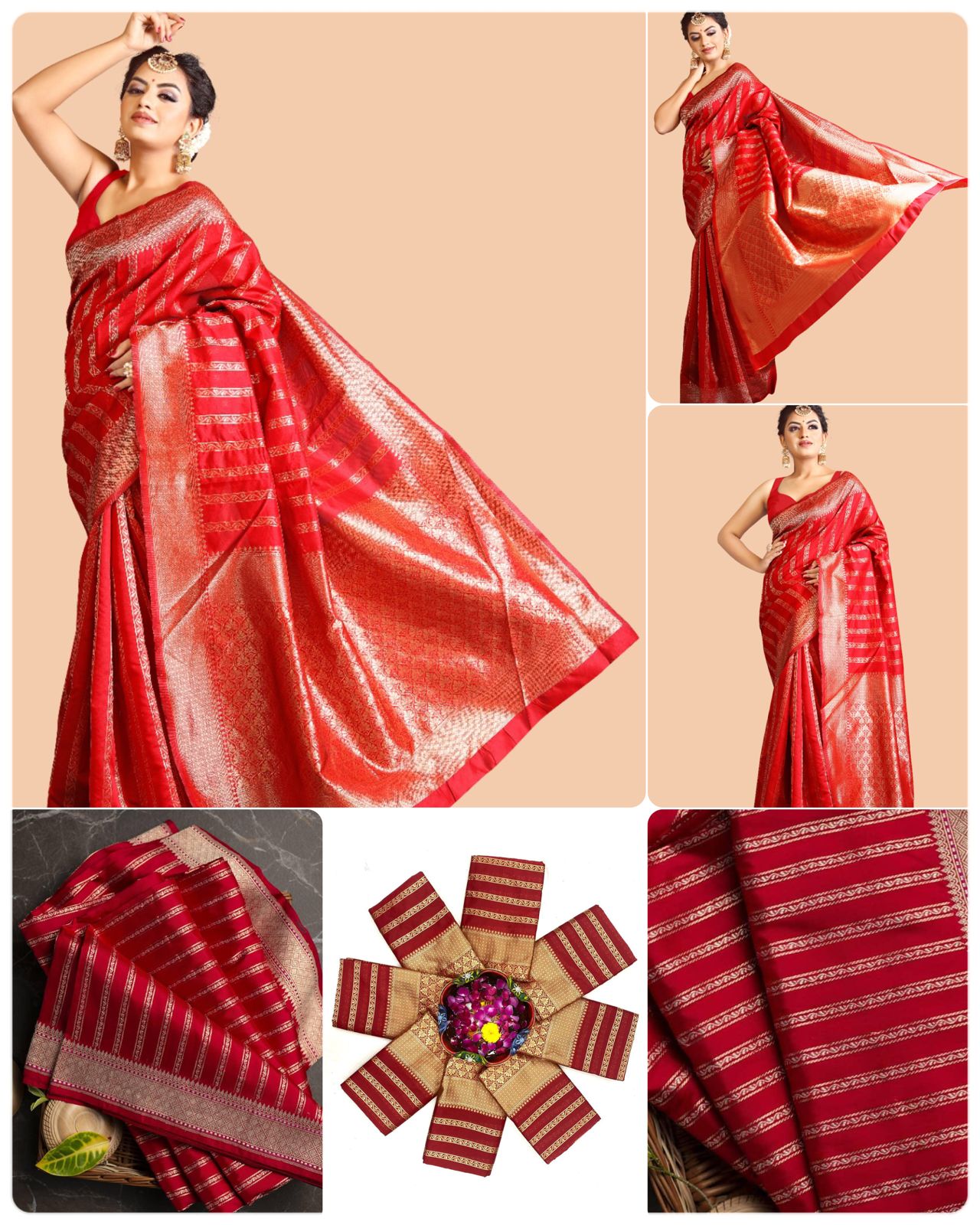 Rich Red Lichi Silk Saree with Jacquard Weaving.