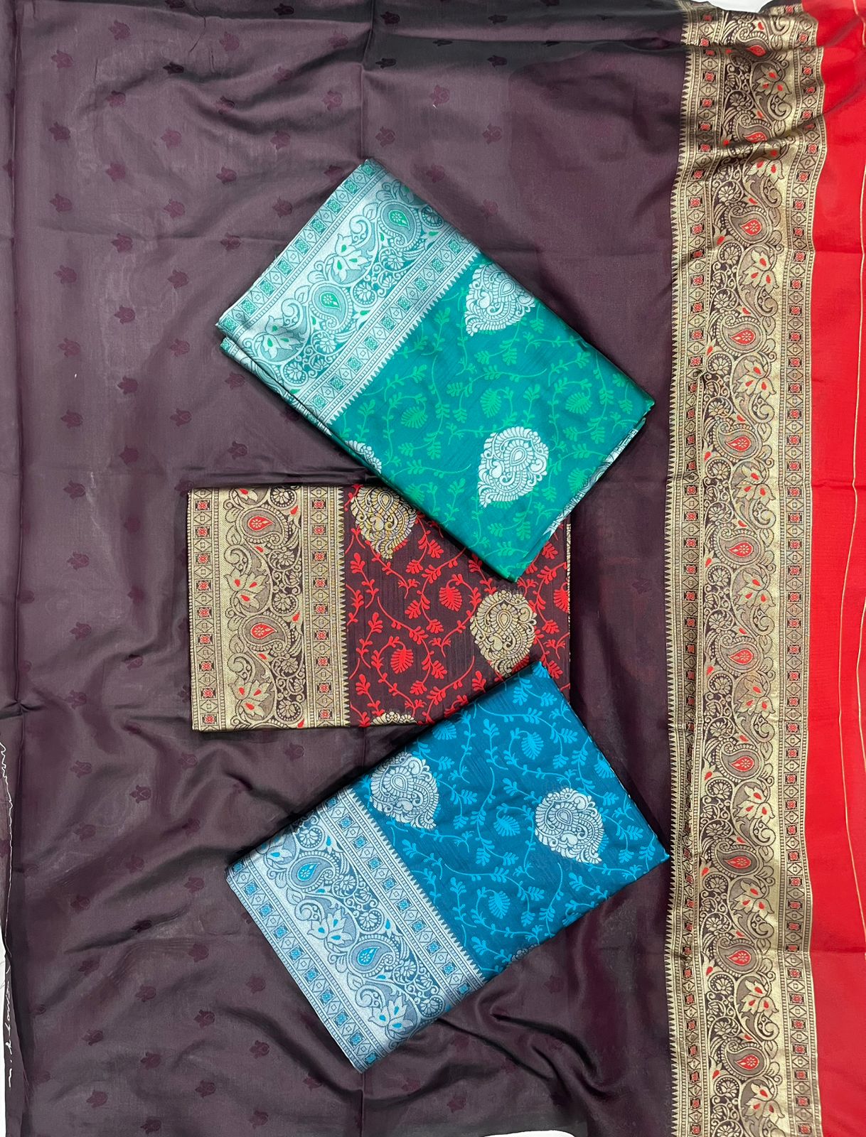 Crafted in lustrous silk, the saree drapes effortlessly, offering comfort without compromising on elegance. Its rich texture and vibrant colour ensure you stand out with refined charm at every event.