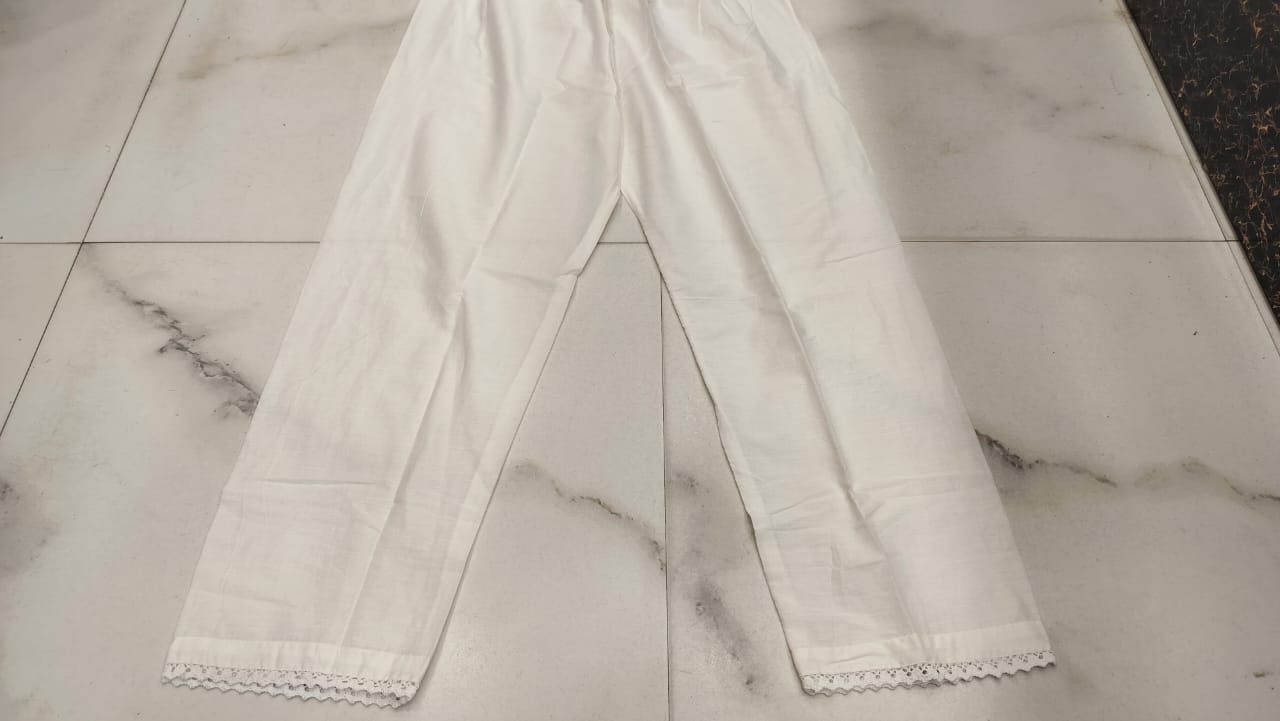 | Pant Style | Straight Cotton Pant, Length 39″, Crochet Lace Finishing |