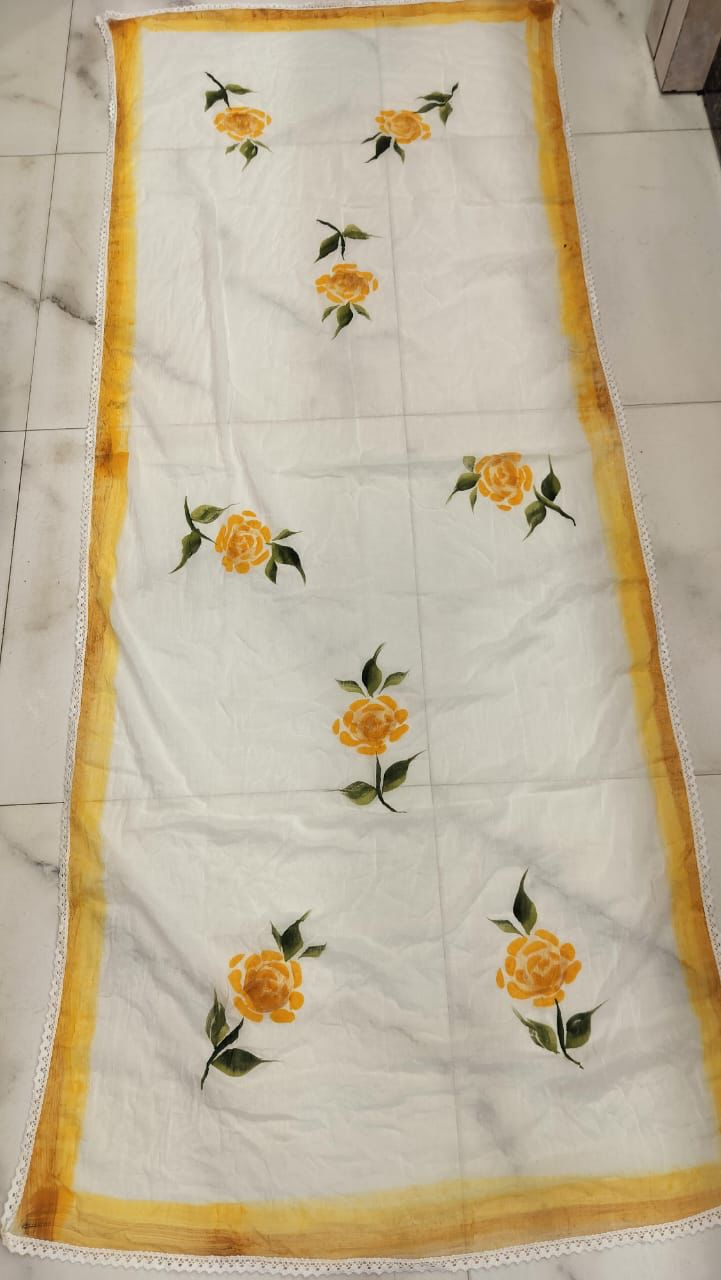 | Dupatta | Full Big Size Mul Mul Cotton with Crochet Lace & Hand-Painting |