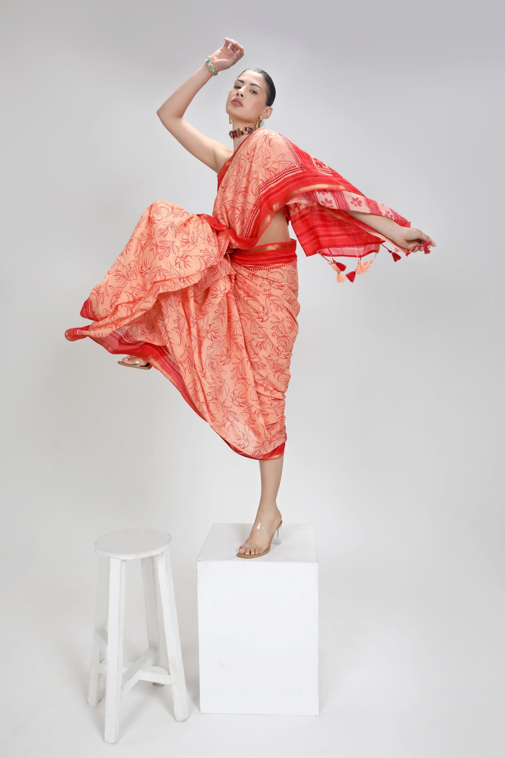 Tassel detailing along the pallu for a playful finish